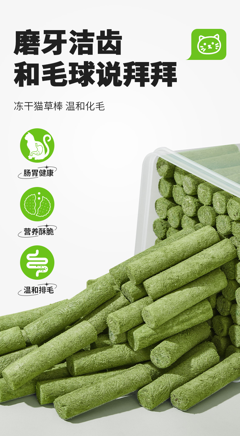 Mascotas liofilizadas para gatos, palitos de paja, dientes molares, bocadillos para gatos, pelos suaves, palitos molares, suministros para mascotas al por mayor