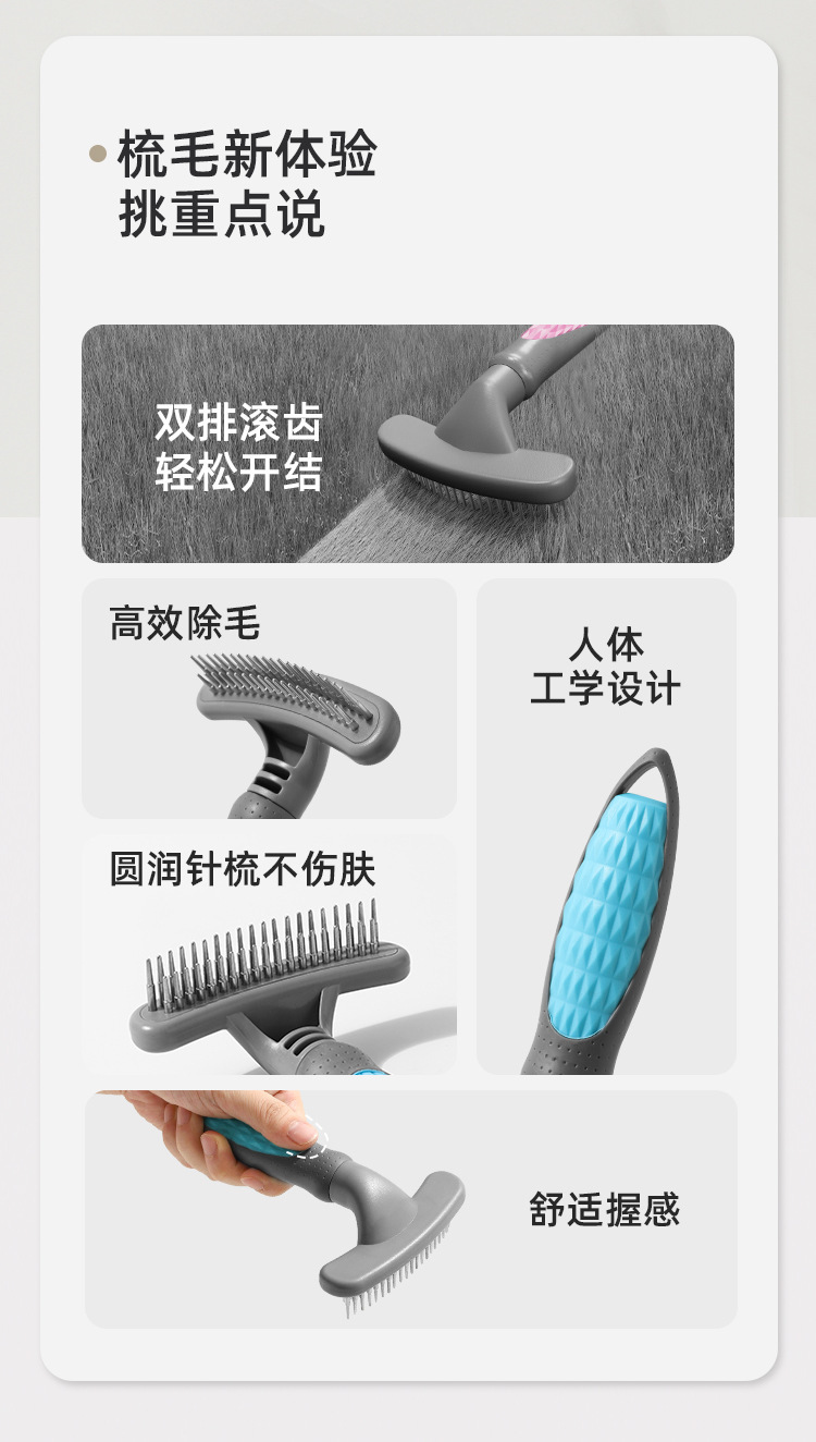 Peine de nudo abierto para mascotas de nuevo estilo Peine de depilación para perros y gatos Peine de rastrillo de uñas Productos para mascotas Peine de pelo de nudo abierto
