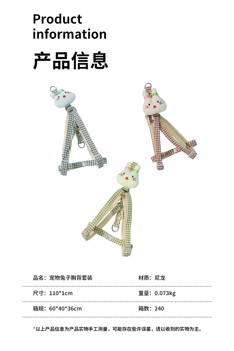 Nueva correa de perro de dibujos animados conejo forma mediano y pequeño perro caminando cuerda correa de nylon transfronteriza al por mayor