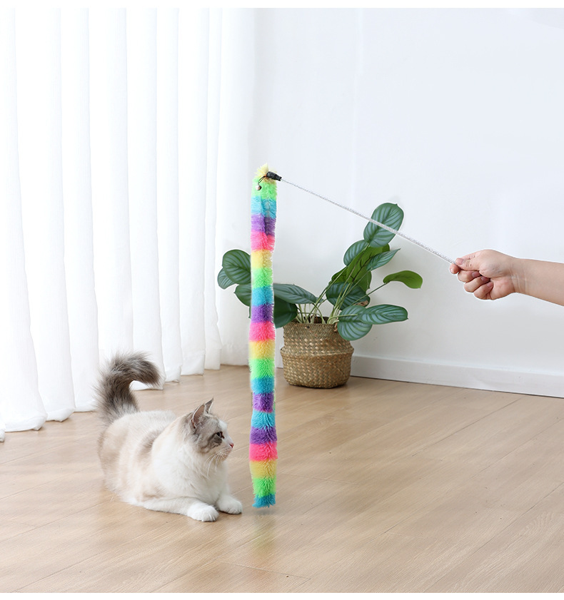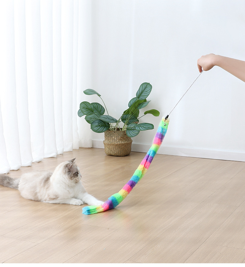 Transfronterizo nuevo en stock franela Arco Iris serpiente divertido gato palo auto-Hi suministros para mascotas gato Juguetes Divertidos al por mayor