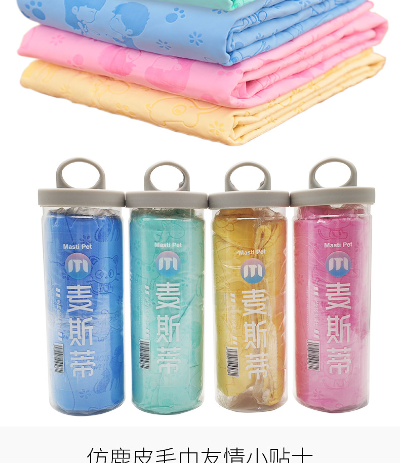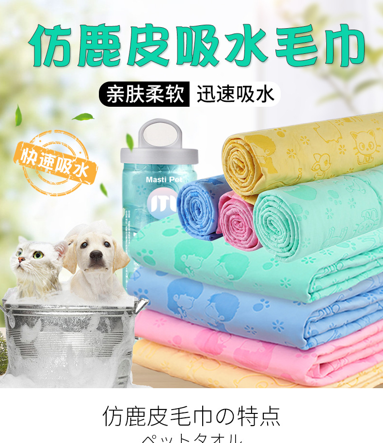 Toalla absorbente para mascotas grande barril perro gato baño limpie agua toalla de piel de venado de secado rápido suministros para mascotas al por mayor