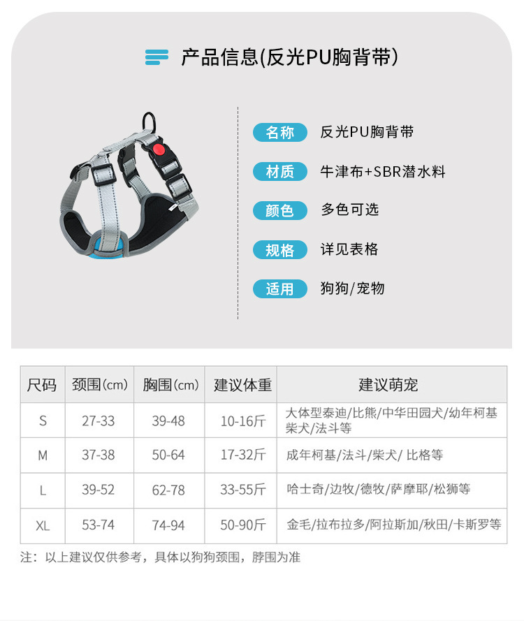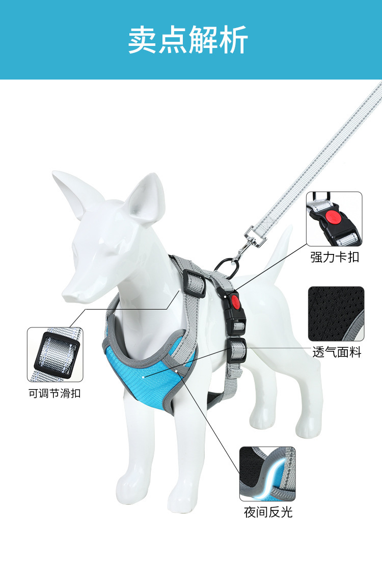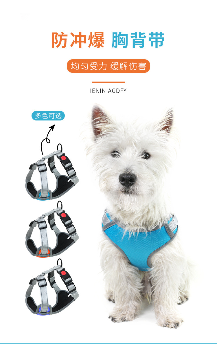 Nueva correa para el pecho del animal doméstico a prueba de explosiones de perforación Big Dog pecho trasero reflectante de cercanías correa de perro cuerda de perro