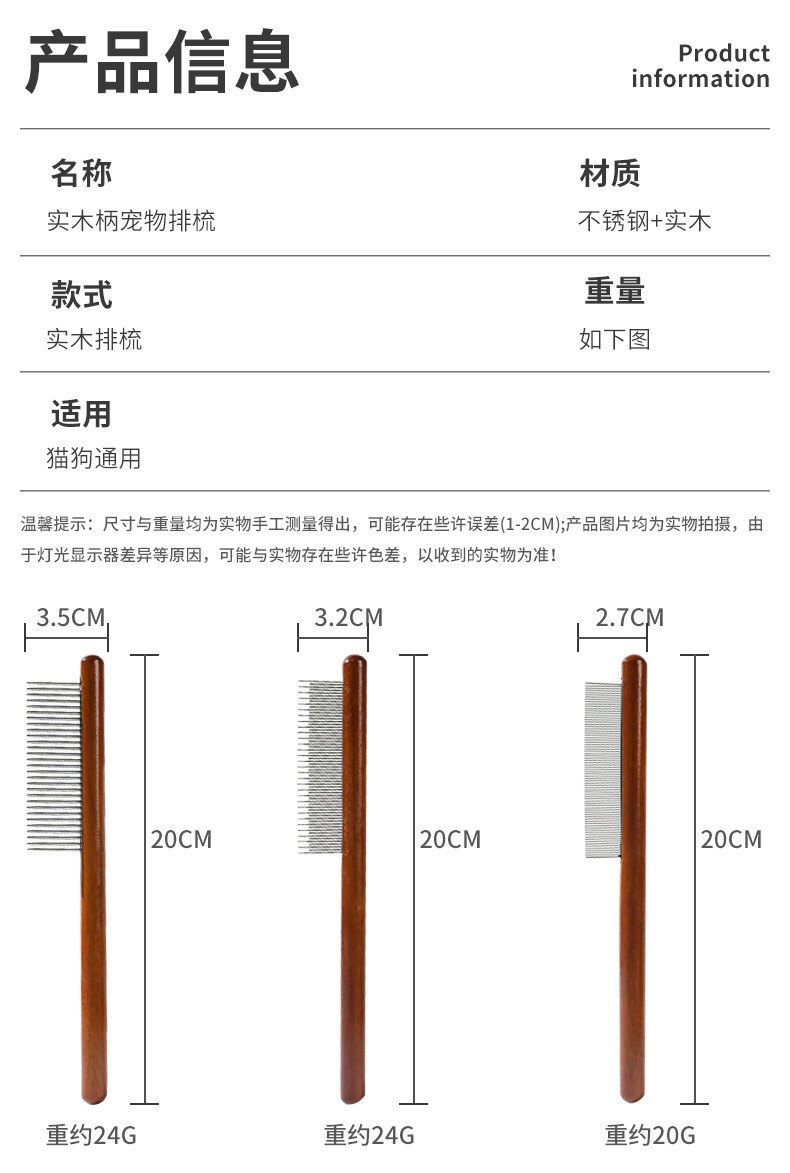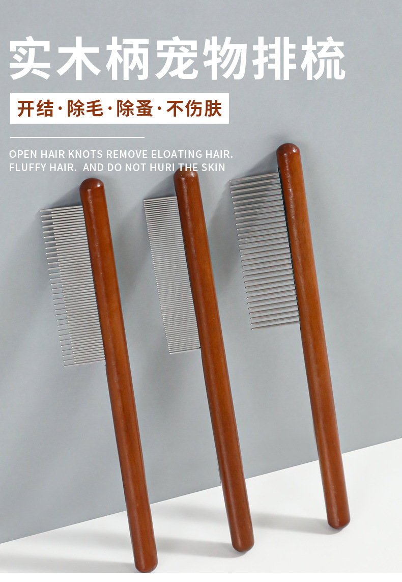 Peines de eliminación de pelo de dientes densos, peines de pulgas de madera sólida, peines de fila de mascotas, peines de pelo flotante para gatos, peines de perros, peines de nodo al por mayor