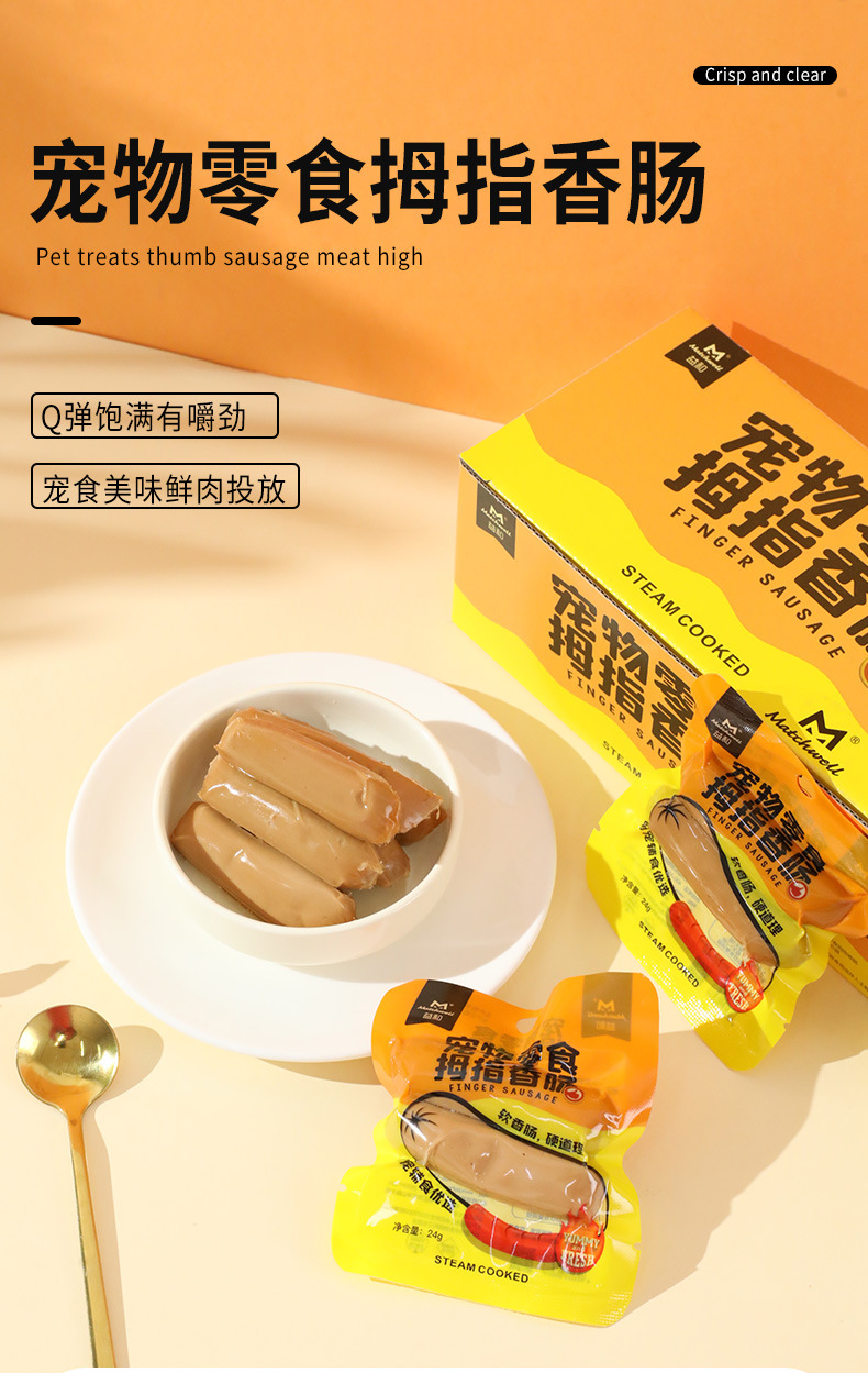 Fábrica directa Yihe pulgar salchicha para mascotas bocadillos de entrenamiento de perros bocadillos de recompensa Teddy para mascotas salchichas de jamón