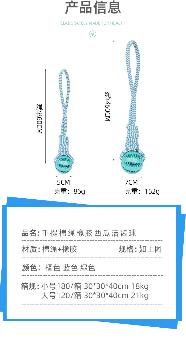 | Colores | Bola de limpieza de dientes de cuerda de algodón portátil-5cm (naranja, azul y verde),Bola de limpieza de dientes de cuerda de algodón portátil-7cm (naranja, azul y verde) |