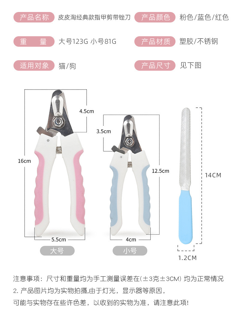 Cortauñas de plástico para mascotas con traje de archivo transfronterizo al por mayor gato perro cortaúñas manicura tijeras de limpieza