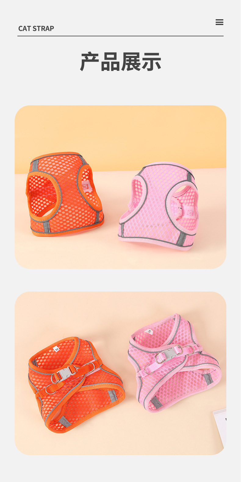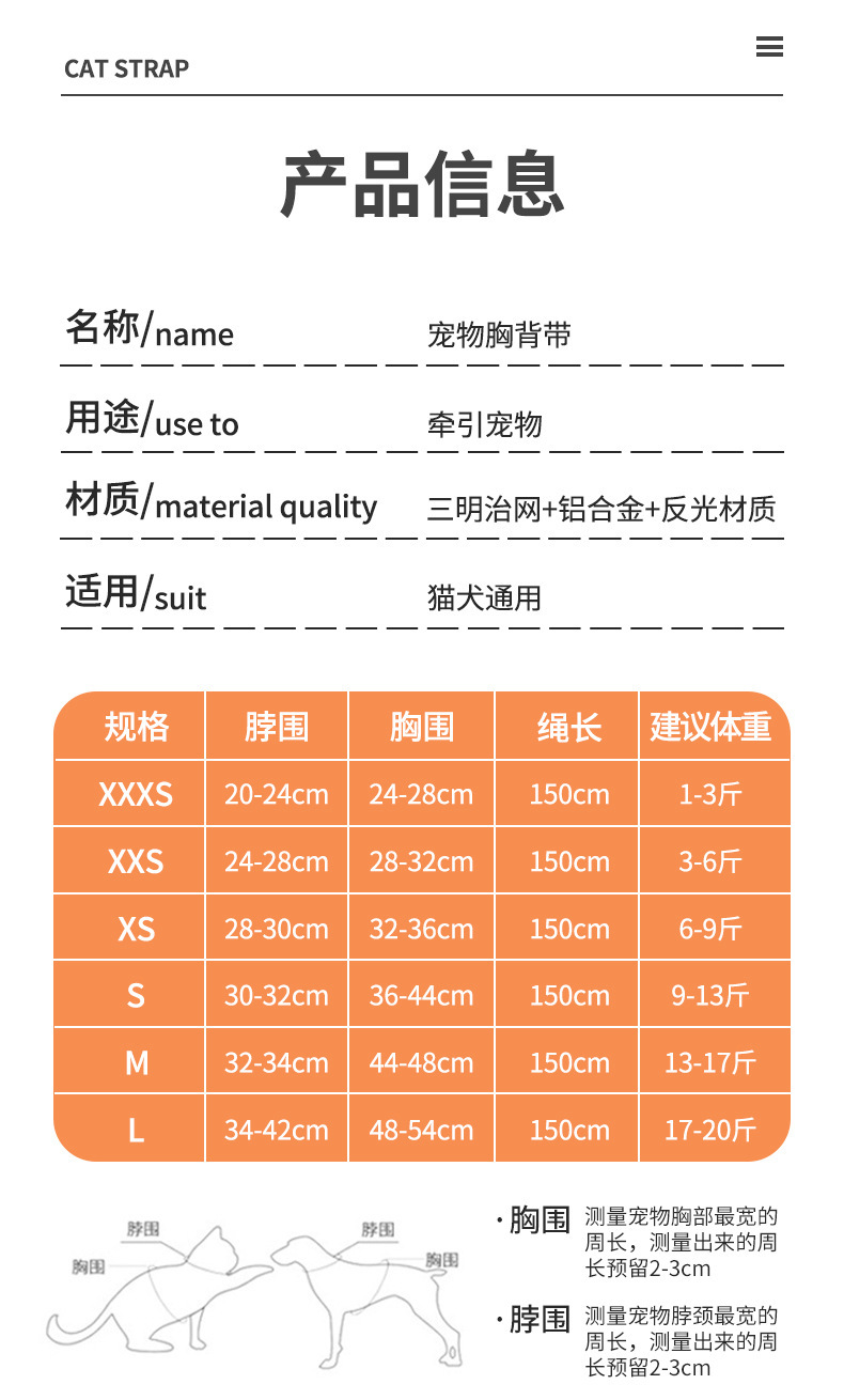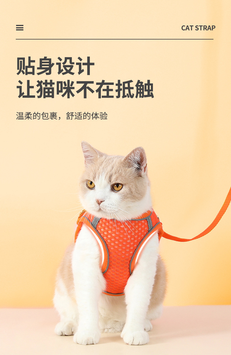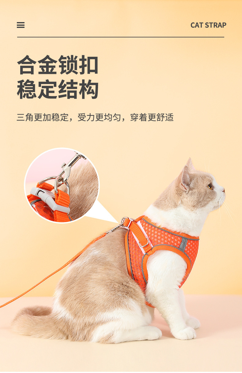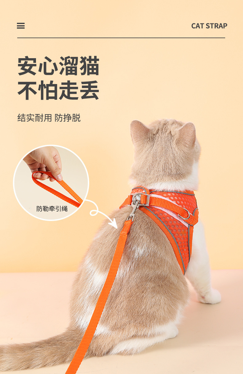 Gran malla transpirable correa del animal doméstico reflexivo correa de pecho pequeño y mediano perro gato Correa correa de gato
