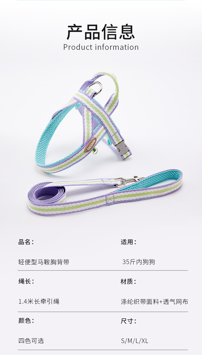 Fresco de verano perro transpirable corda de tracción ajustable perro pequeño y mediano Teddy Bear Corky explosión pecho y espalda