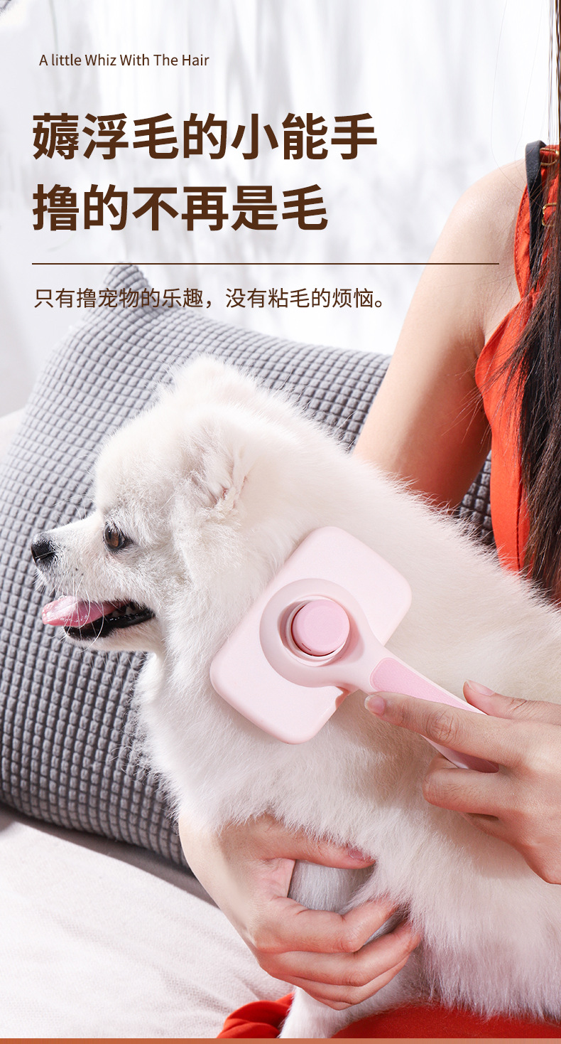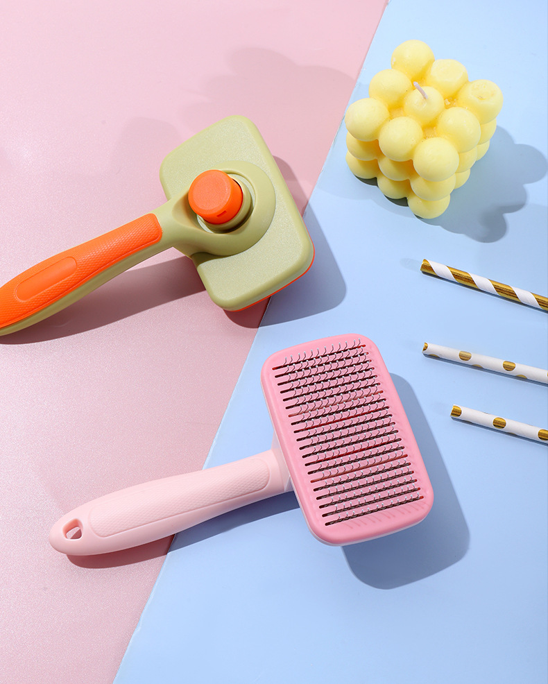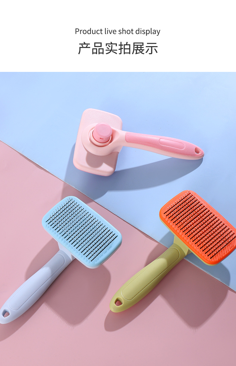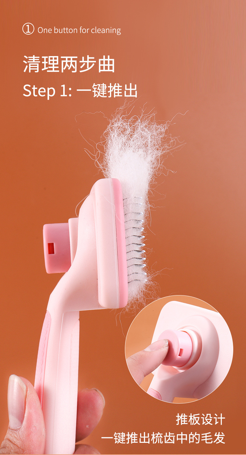 Nuevo mango largo pet grooming peine gato y perro aseo cepillo suministros para mascotas con un solo clic removedor de pelo transfronterizo en stock al por mayor