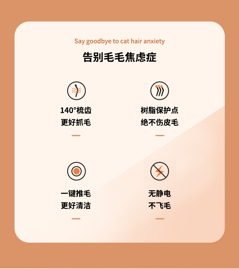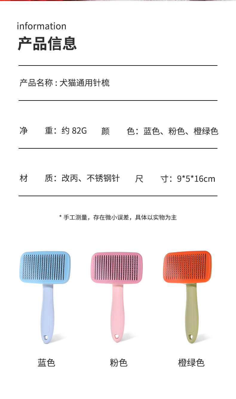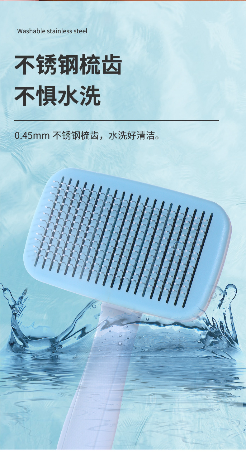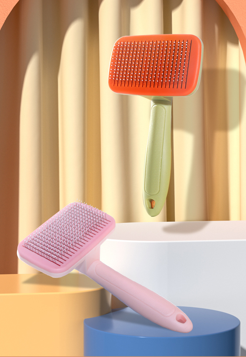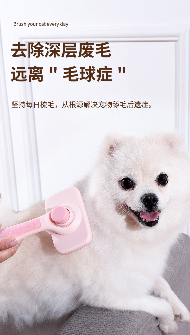 Nuevo mango largo pet grooming peine gato y perro aseo cepillo suministros para mascotas con un solo clic removedor de pelo transfronterizo en stock al por mayor