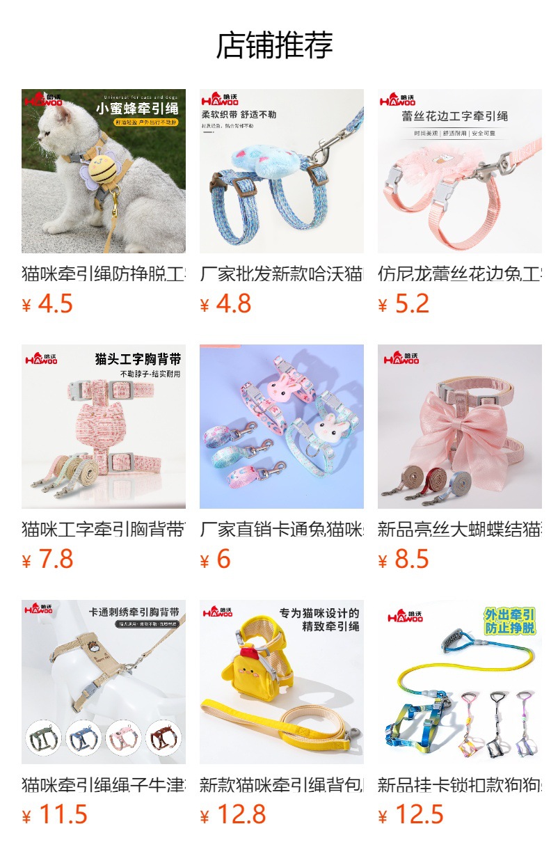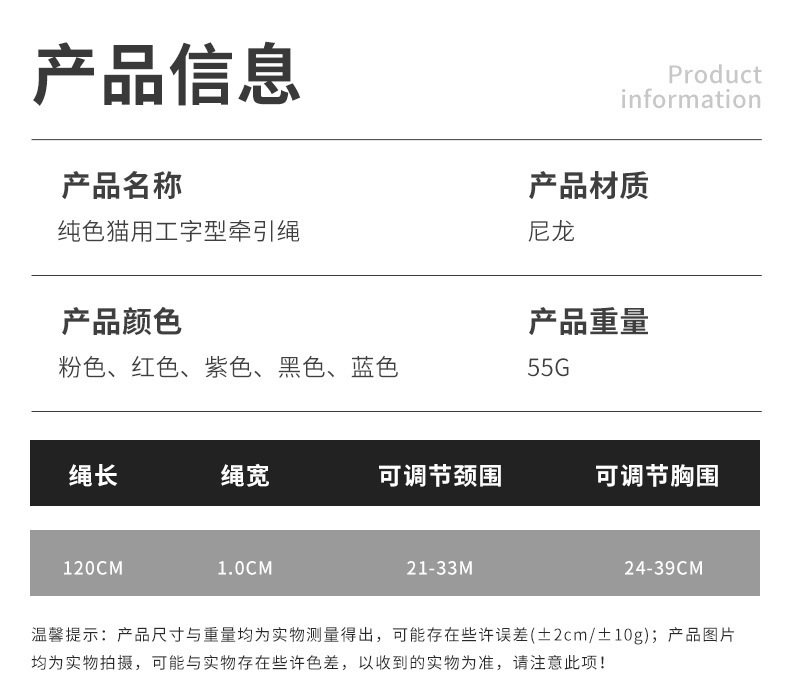 Correa de gato en forma de I transfronteriza cuerda de perro pequeña cuerda de gato cuerda plana de nylon correa de cuerda de gato ajustable