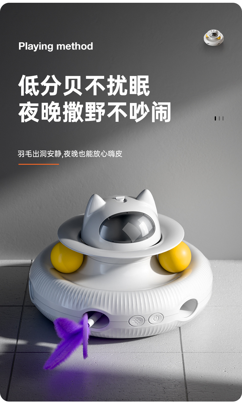 Nuevo producto juguete de gato eléctrico palo de plumas de gato divertido láser plato giratorio automático de gato