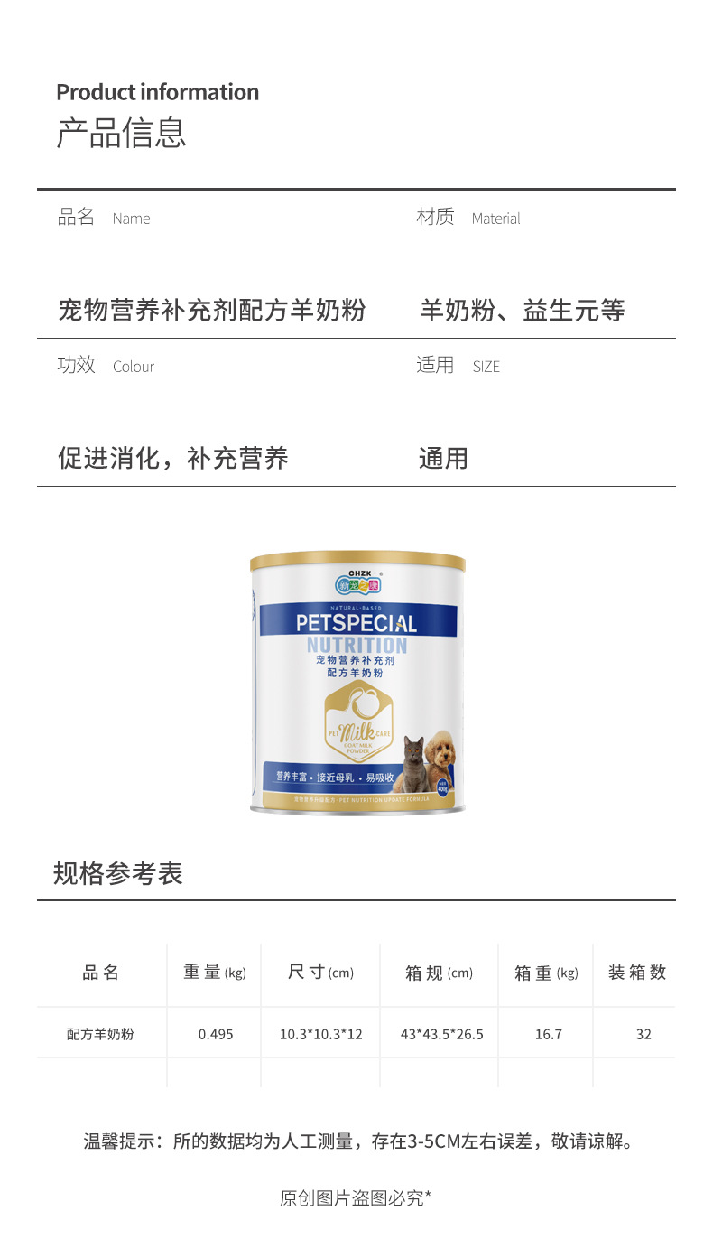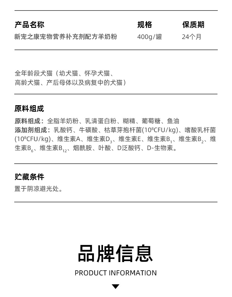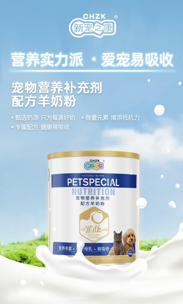 XINZHANGZHIKANG perros y gatos, leche en polvo de cabra para gatos, nutrientes de calcio, nutrientes de aumento de peso, leche en polvo 400g, una lata