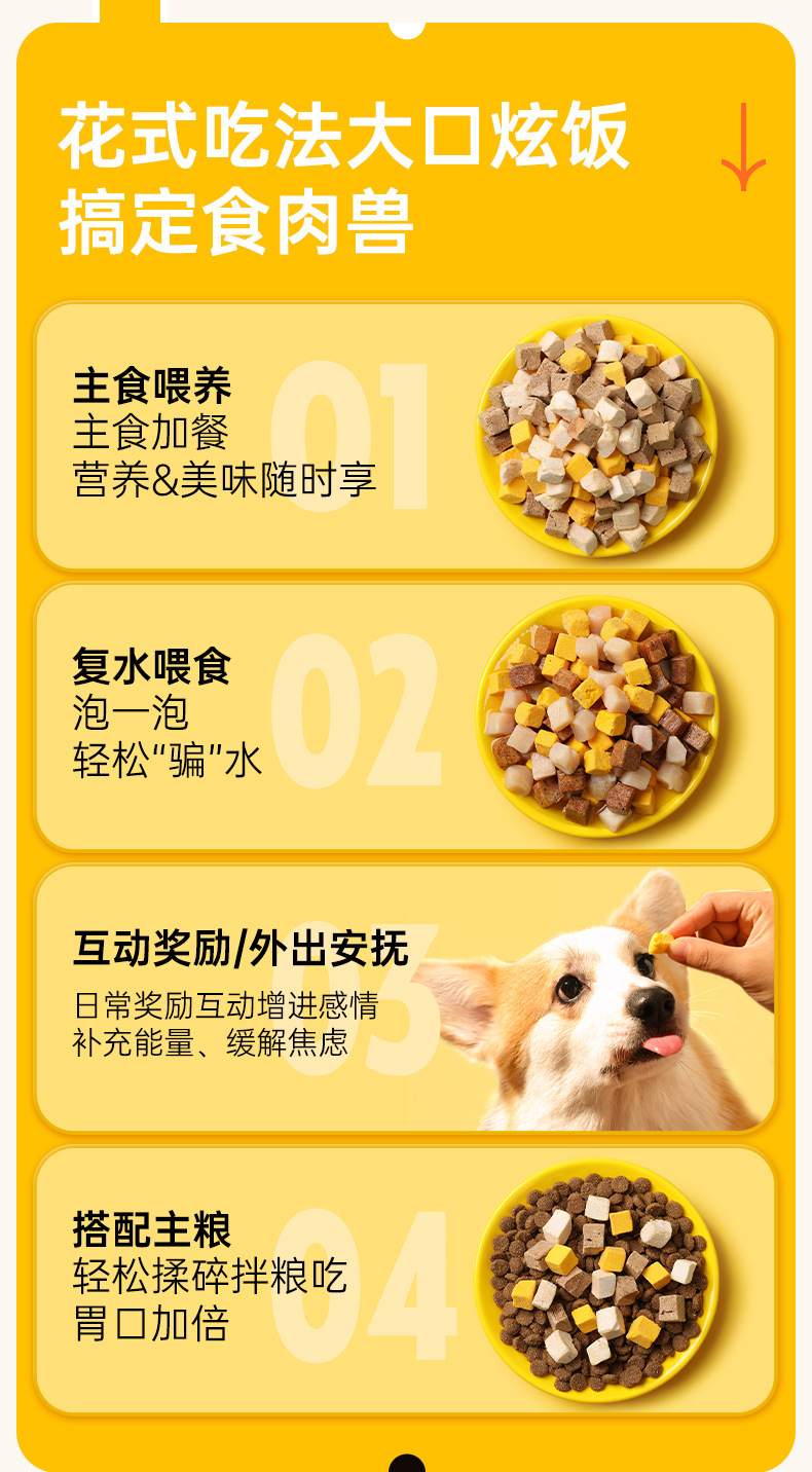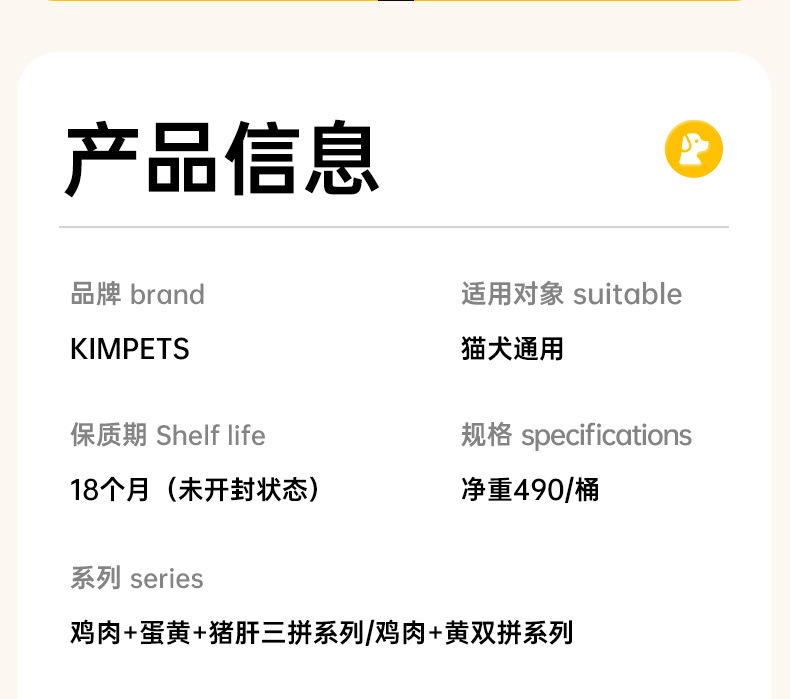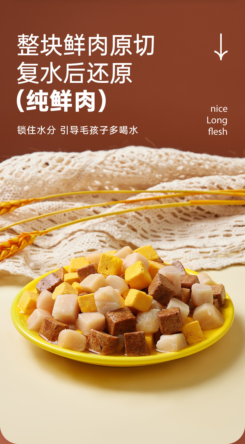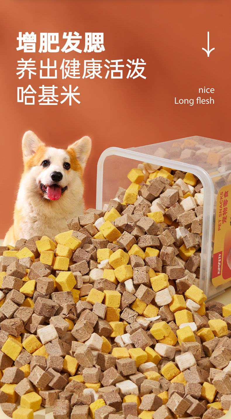 Barril de mascotas pollo liofilizado yema de huevo cabello brillante branquias para gatos y perros snacks Cero agregado carne fresca pura comida para mascotas