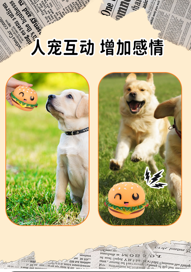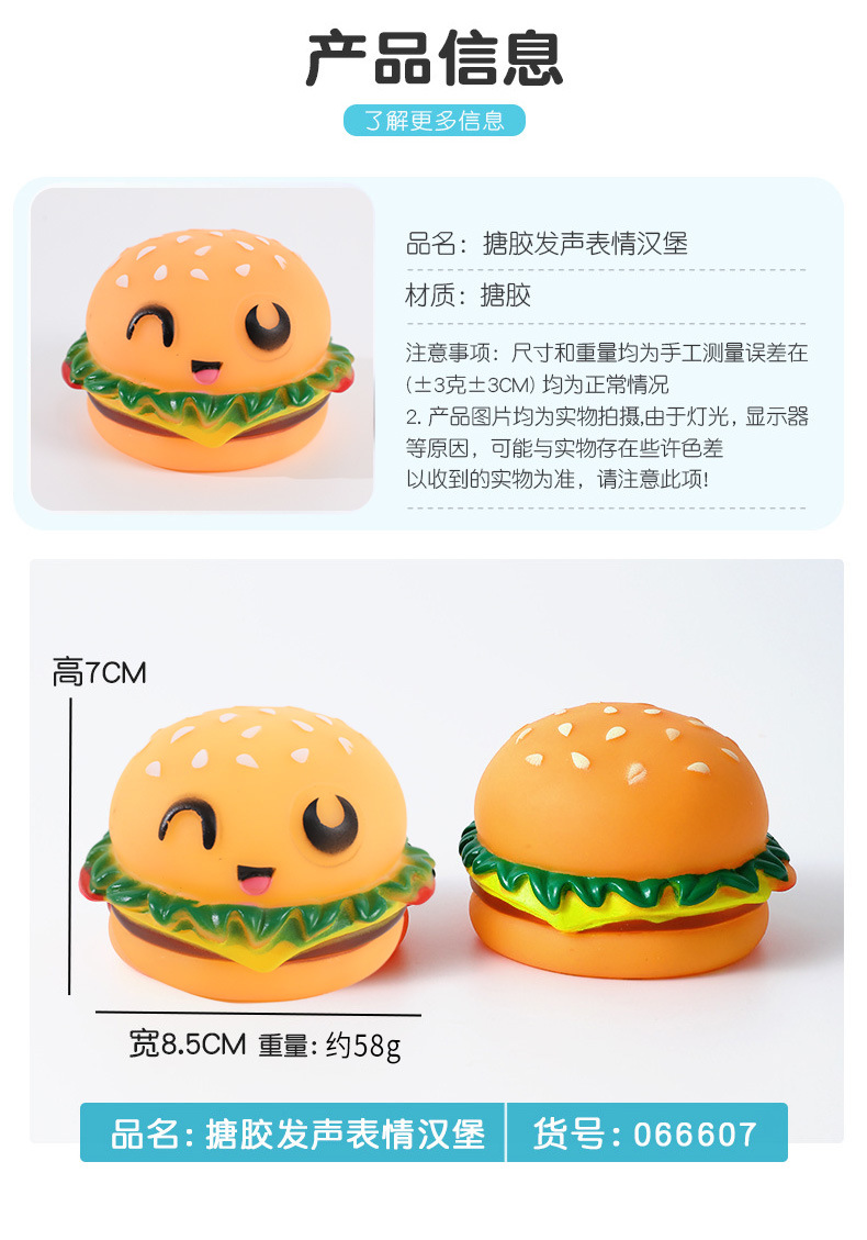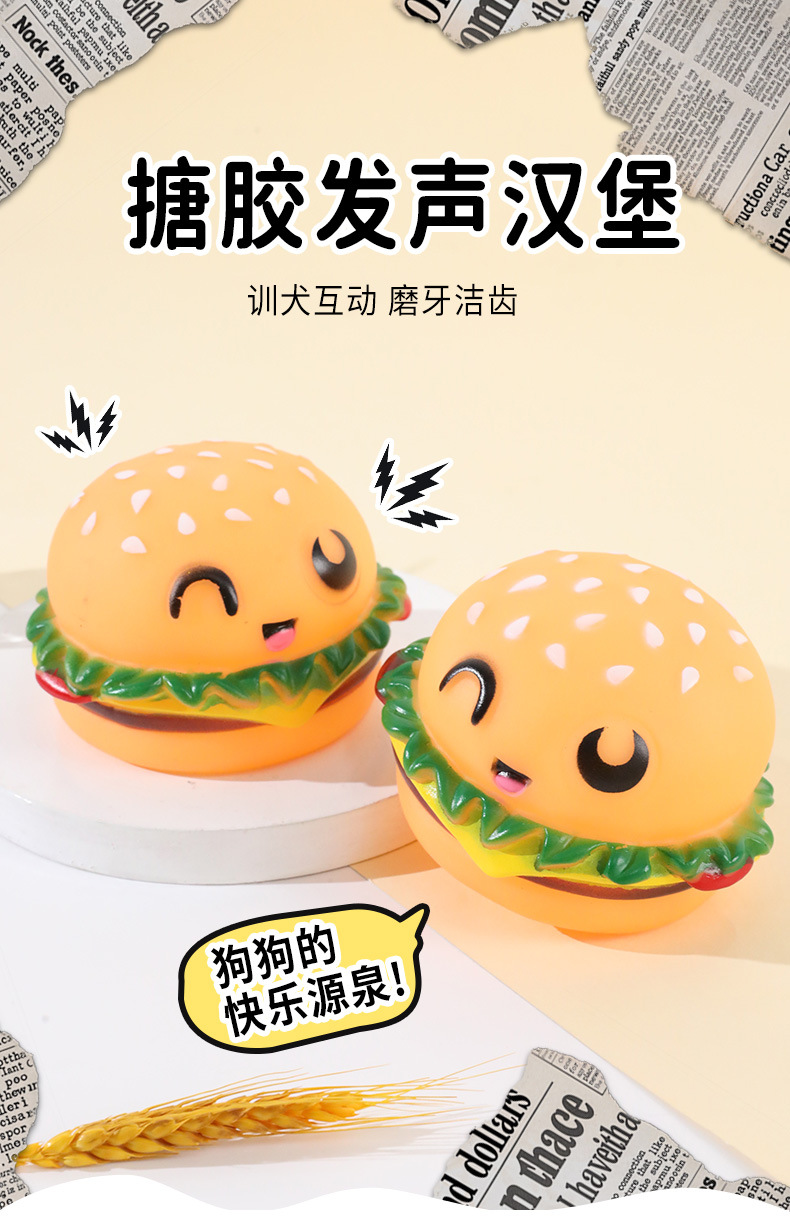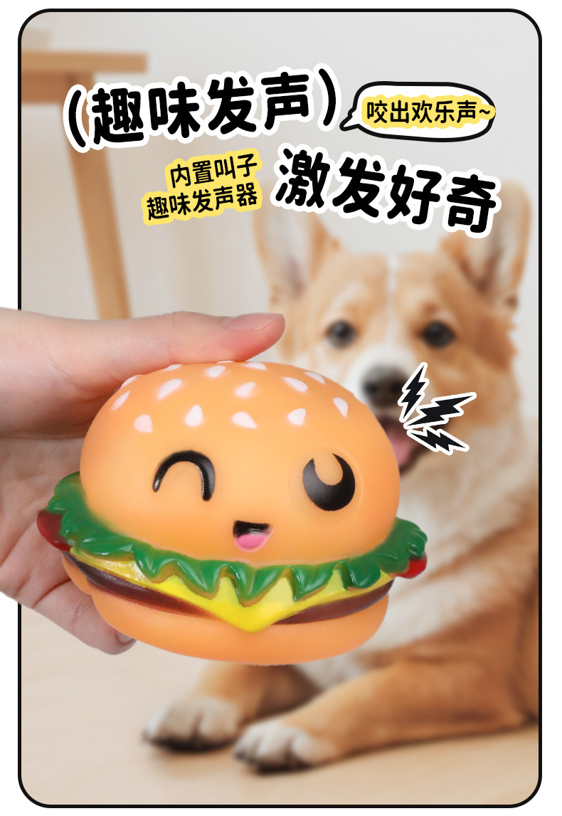 Vinilo, expresión vocal, hamburguesa, juguete molar para perros, artefacto resistente a morder y aburrido, juguete para mascotas para perros pequeños y medianos al por mayor