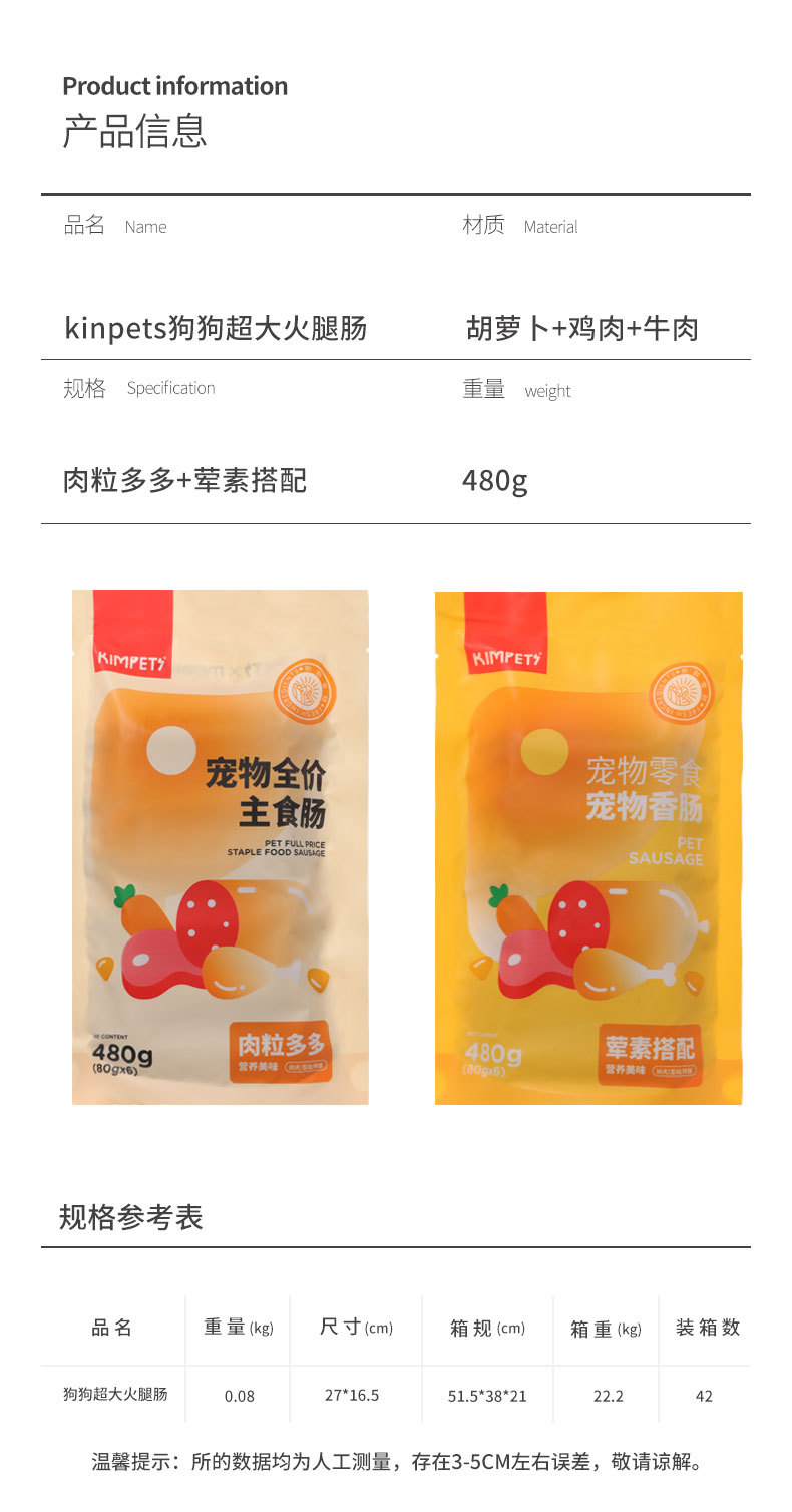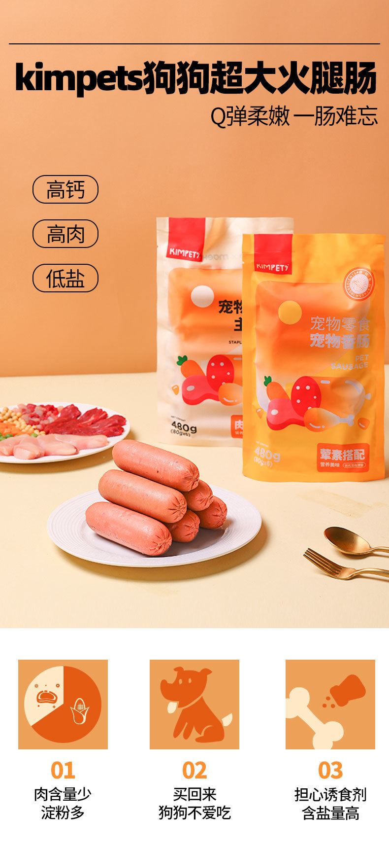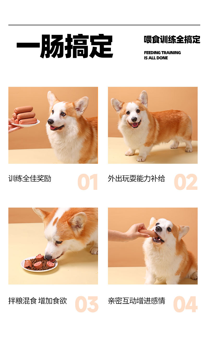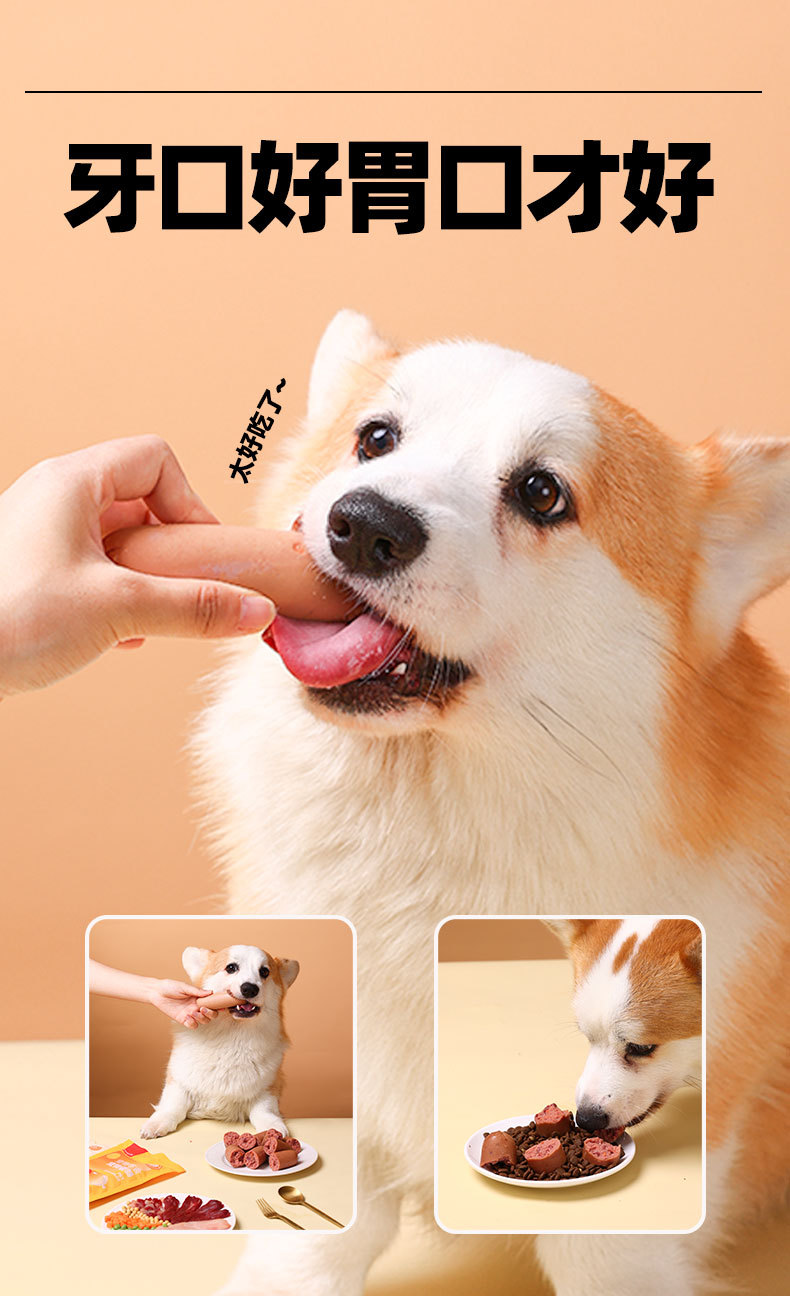 Nuevos bocadillos para perros Salchicha de jamón Salchicha especial para perros Aperitivos para perros Suplemento de calcio Alimentos para mascotas sin sal al por mayor