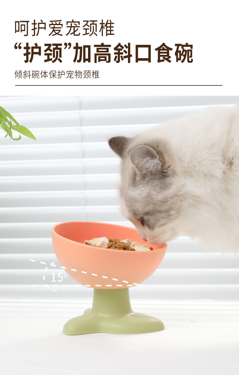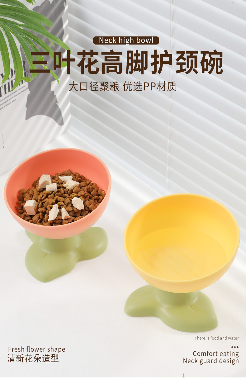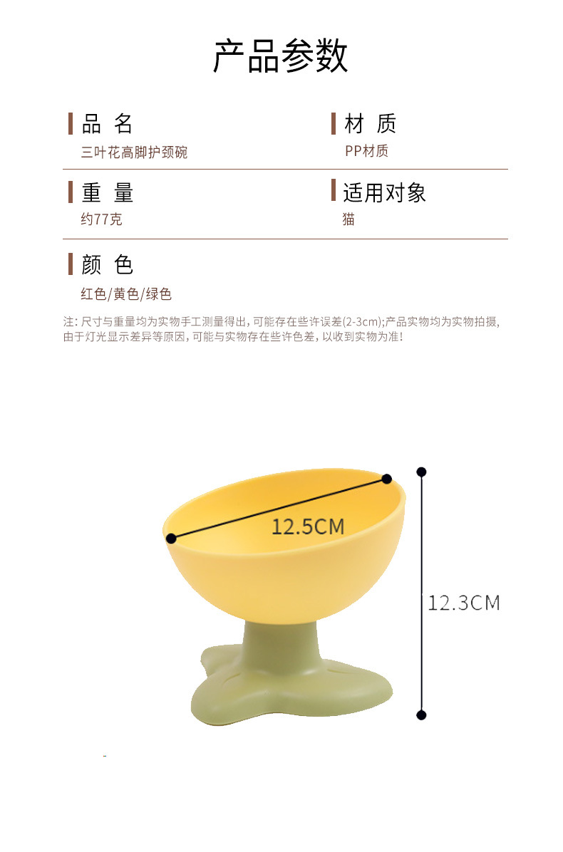 Flores de tres hojas para gatos cuenco para proteger la columna vertebral cervical para gatos cuenco para mascotas de gran calibre cuenco de agua inclinado para evitar derribar cuenco para mascotas