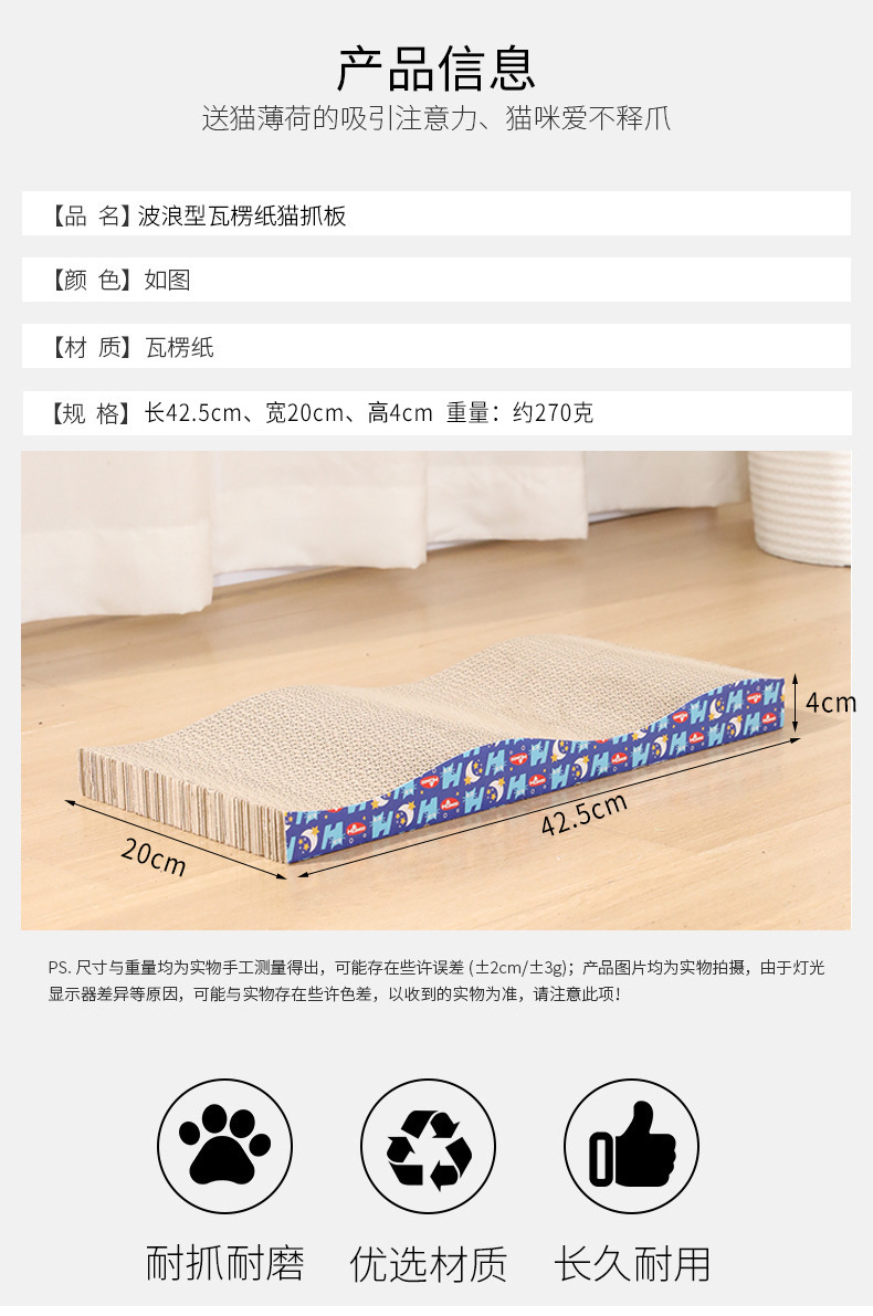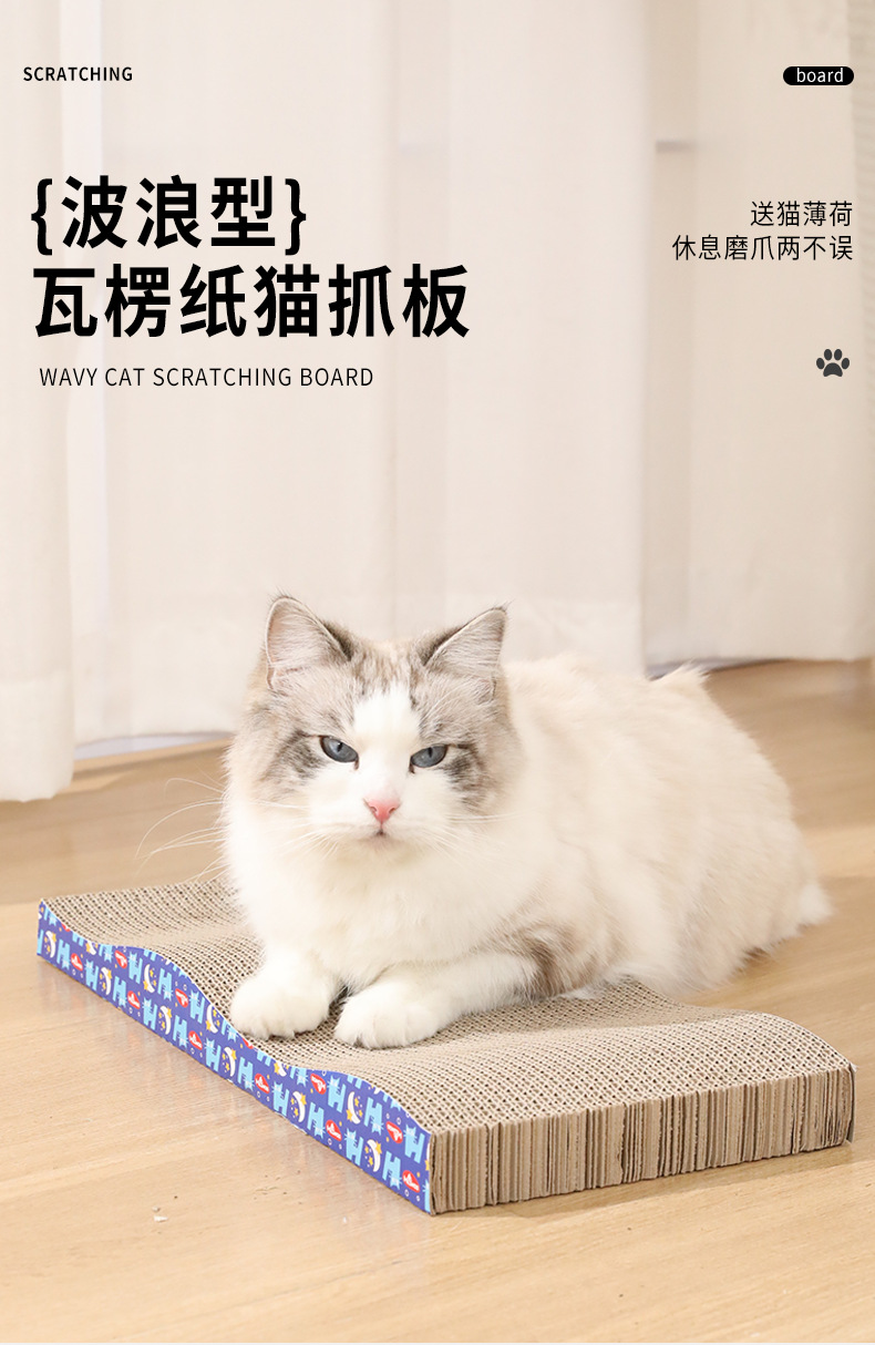 Tablero de agarre para gatos resistente al desgaste en forma de onda, papel corrugado, juguetes para gatos que no caen virutas, fabricantes de artefactos de garras afiladas para gatitos al por mayor