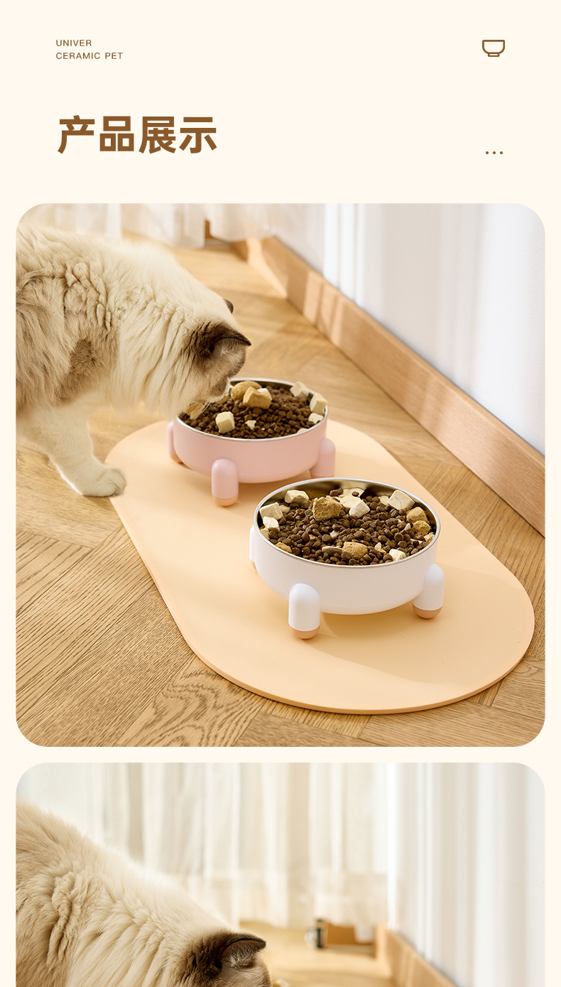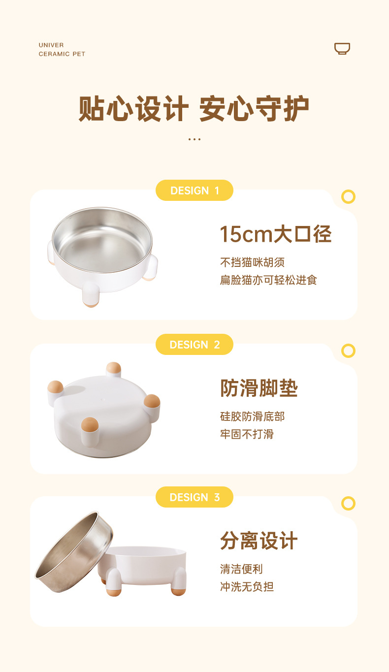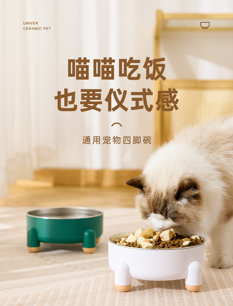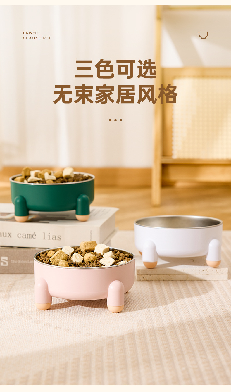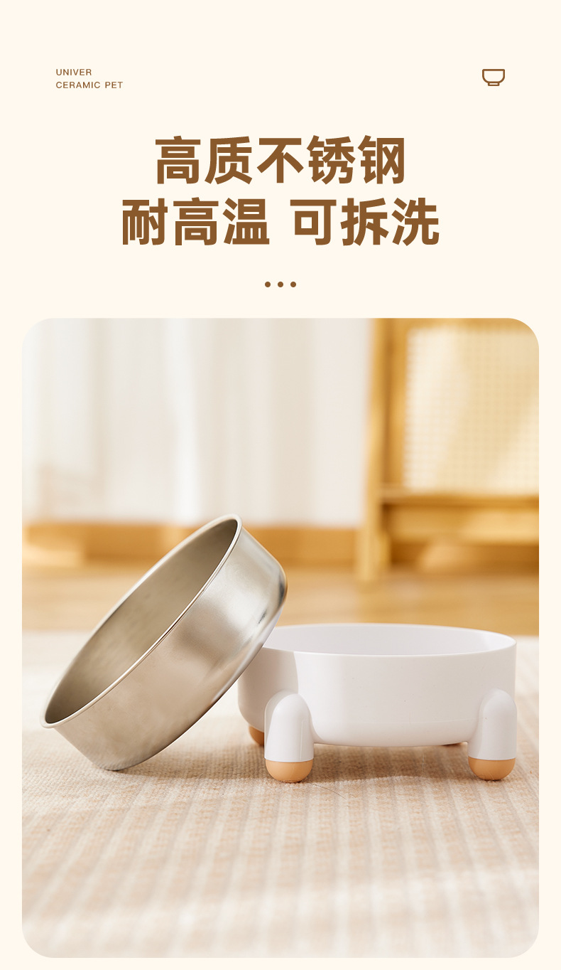 Tazón para perros de acero inoxidable para mascotas Tazón de comida antideslizante de cuatro patas Tazón para mascotas anti-volcado Sin mentón negro Tazón para gatos de patas altas Spot