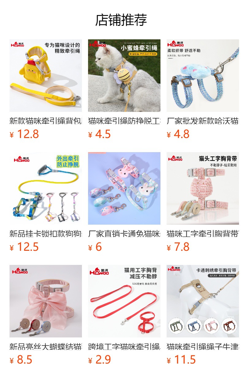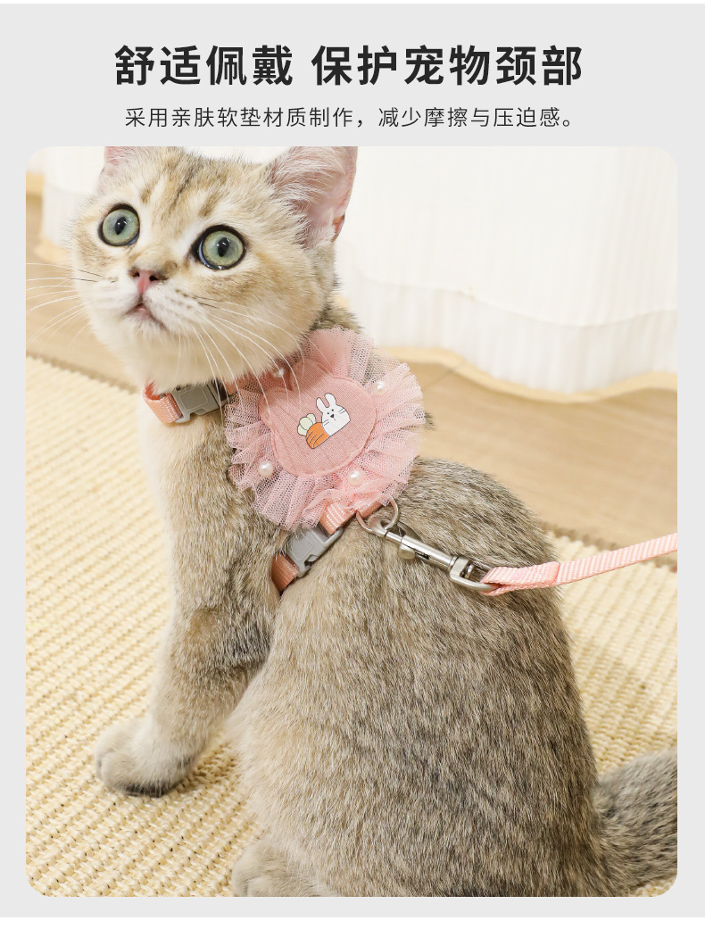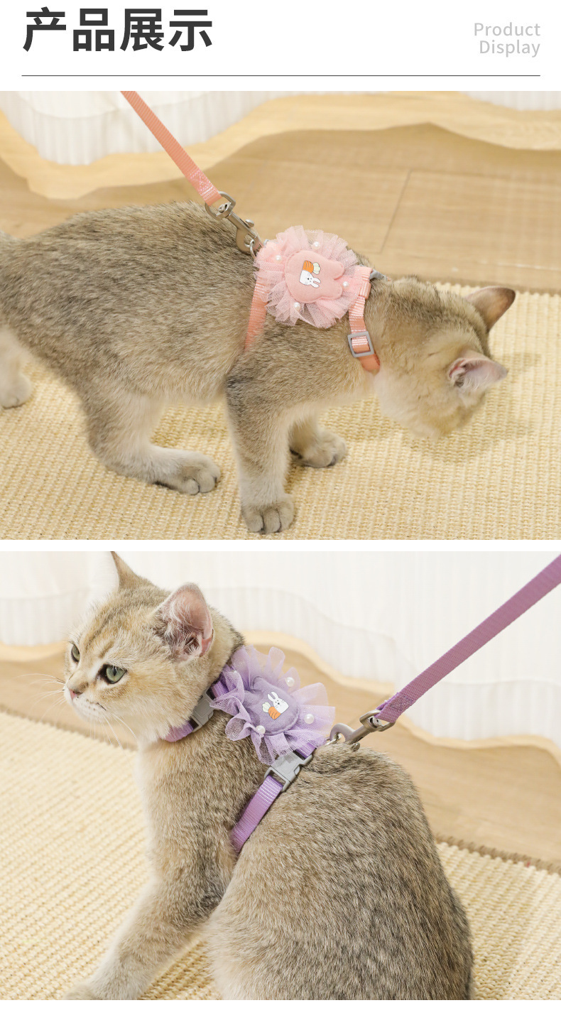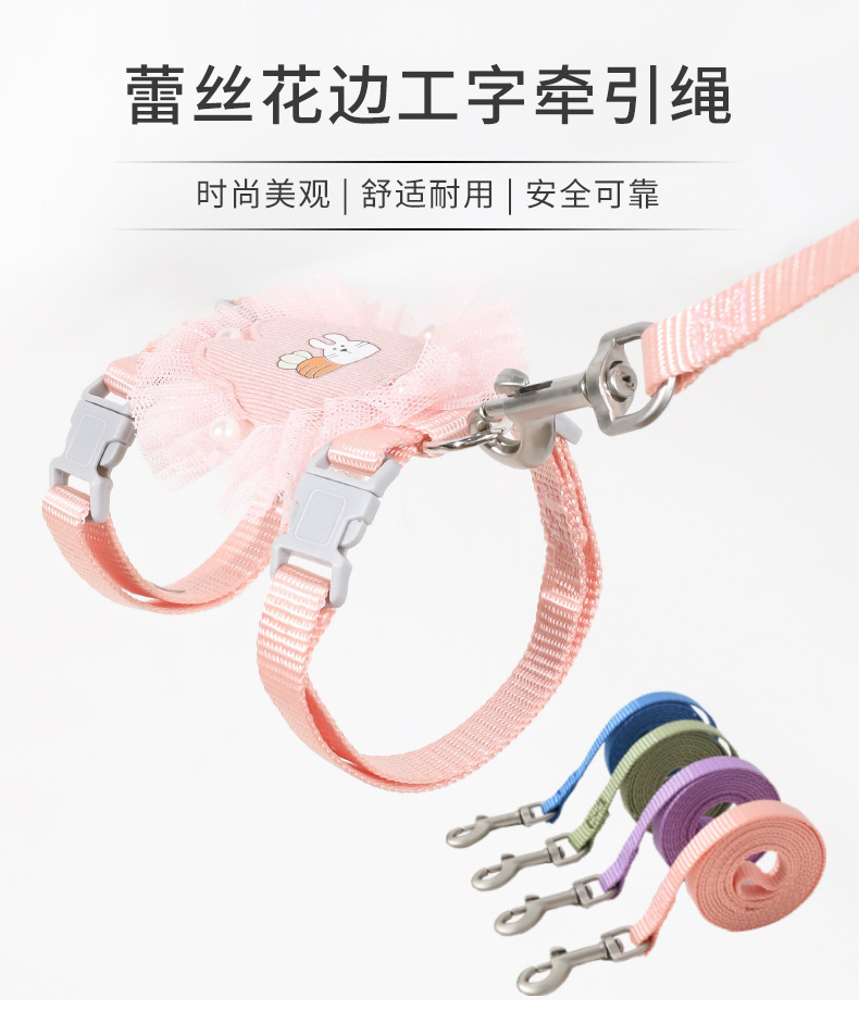 Imitación de nylon encaje conejo en forma de I gato correa de pecho anti-rotura perno gato cuerda al por mayor