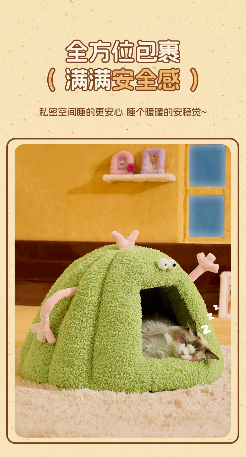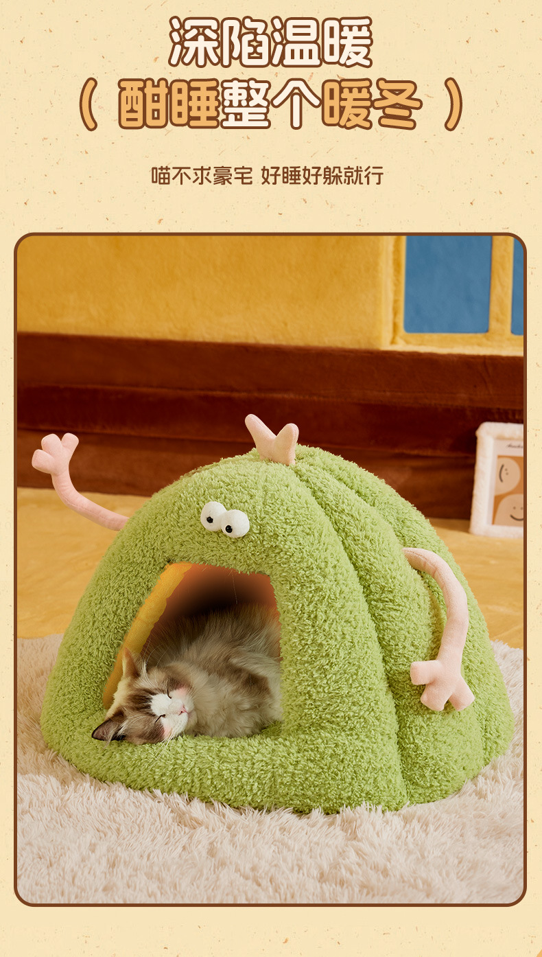 Otoño e invierno nuevo estilo pequeño monstruo en forma de caseta para perros para gatos invierno cálido semi-cerrado nido para gatos productos para mascotas al por mayor