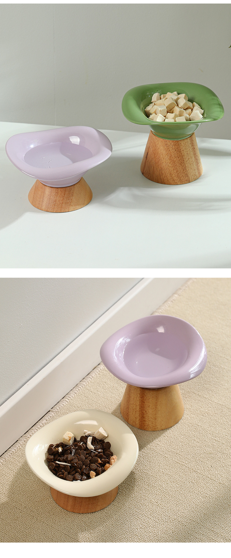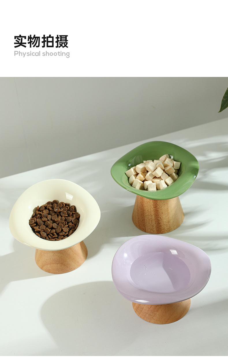 Nuevo gato de pie alto asiento de madera tazón de cerámica protección cervical perro tazón de arroz tazón de comida para gatos tazón antidetonante tazón para beber