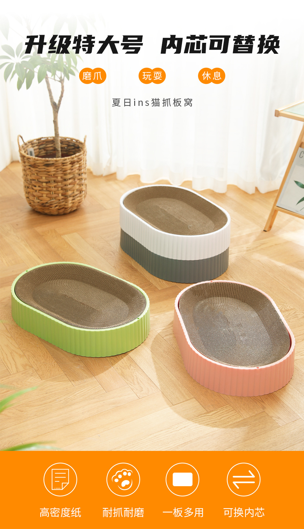 La nueva cama de gato rasguño tablero uno resistente de alta calidad de papel corrugado suministros para mascotas Amazon al por mayor