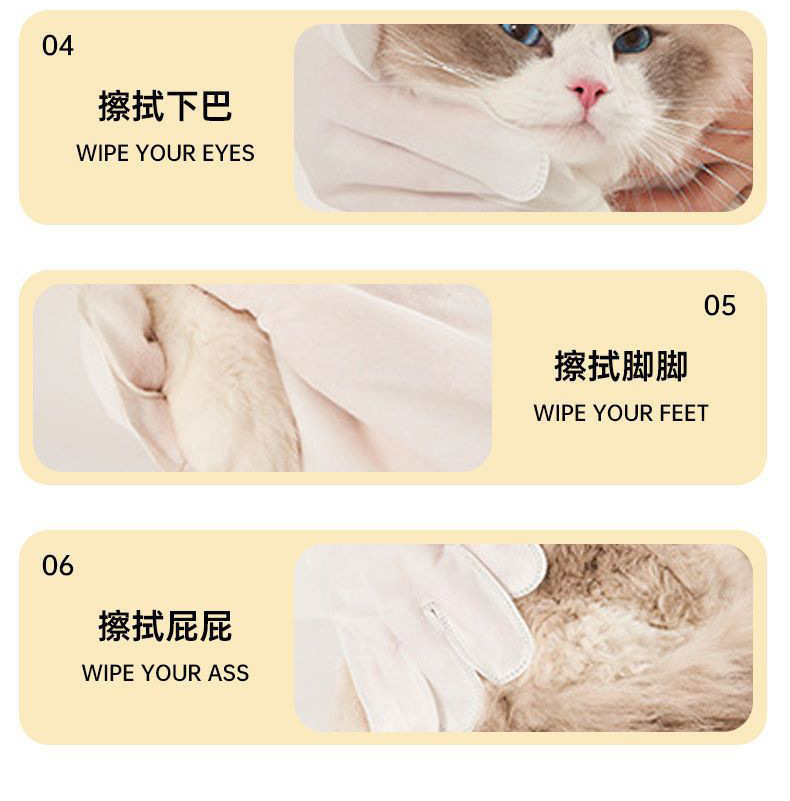 Guantes de limpieza desechables para mascotas, limpieza en seco para gatos, desodorante, toallitas húmedas no tejidas, guantes de baño desechables universales para gatos y perros
