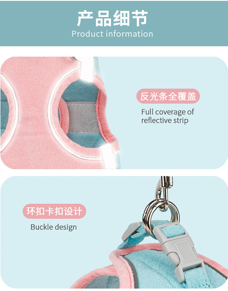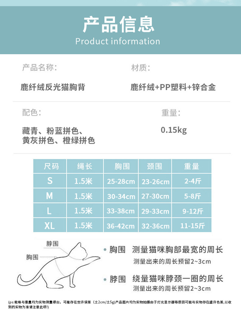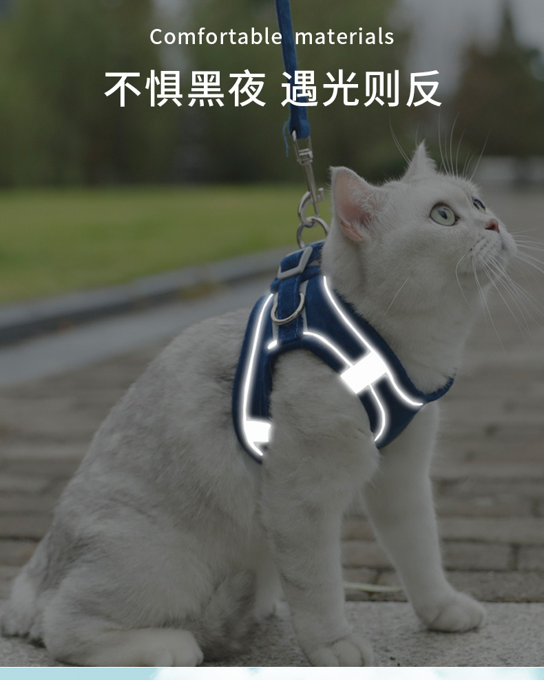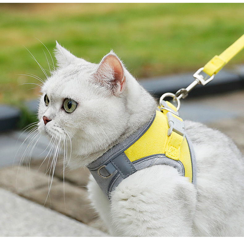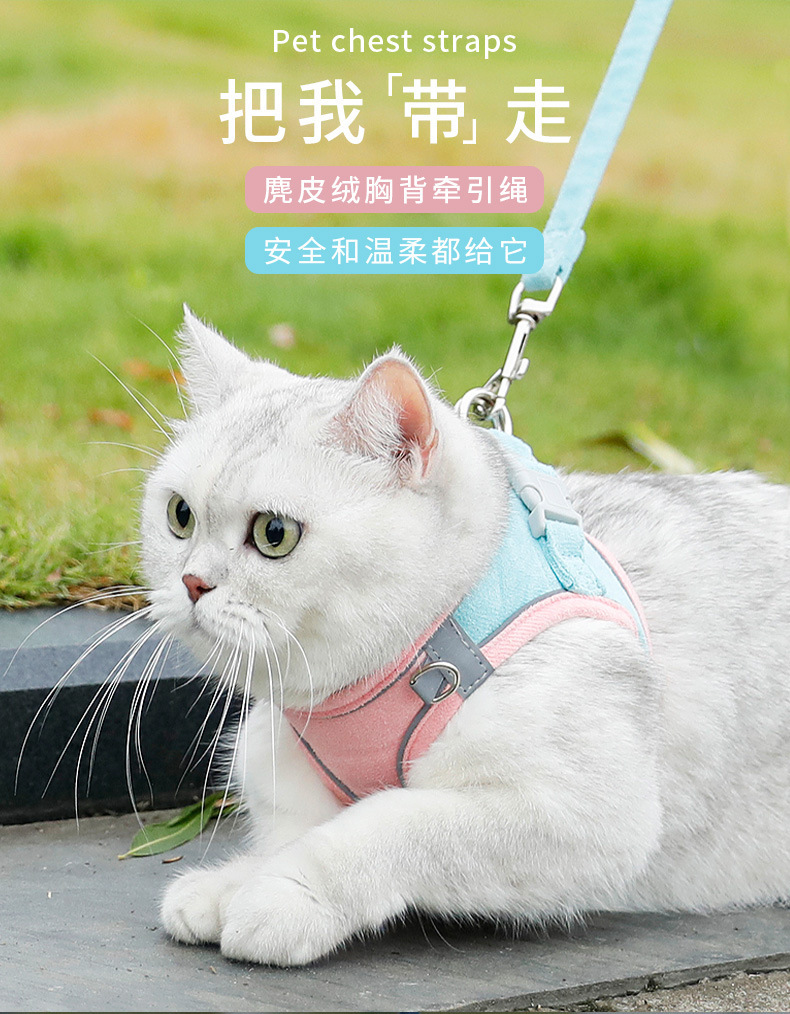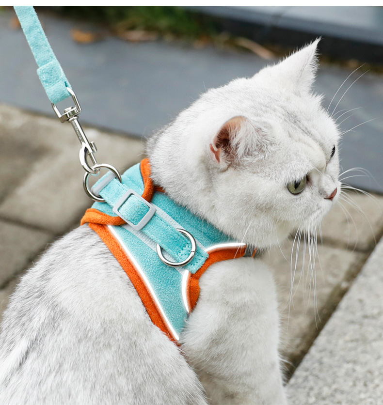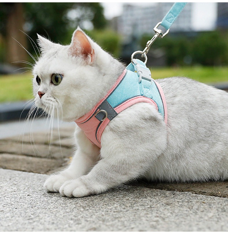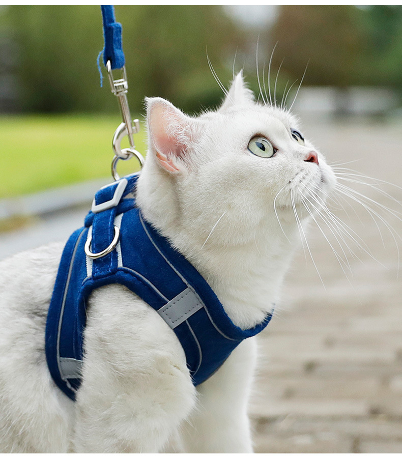 Correa para el pecho de perro, correa para el pecho reflectante de gamuza anti-liberación, correa para el pecho para salir, chaqueta para el pecho de gato ligera y transpirable