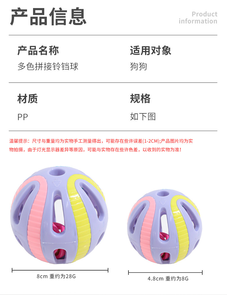 Bola de juguete para mascotas auto-hi alivio aburrido colorido campanas de doble capa bola de sonido resistente al desgaste y resistente a la mordida juguete general para gatos y perros