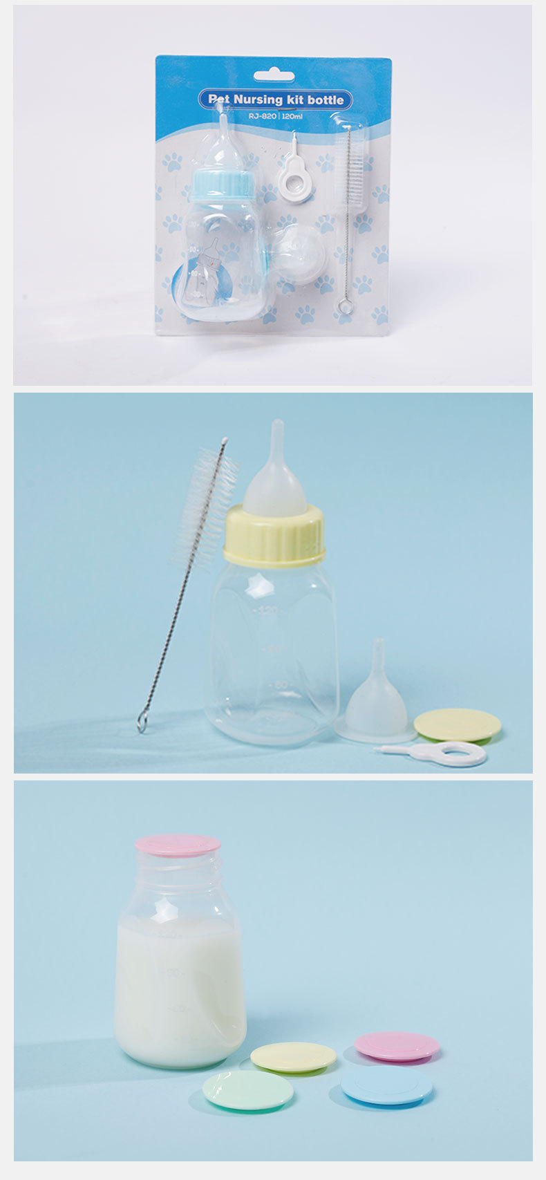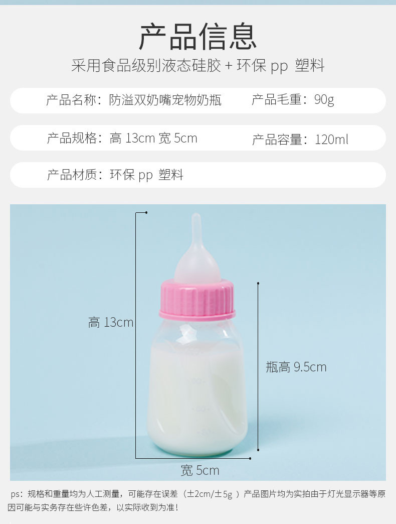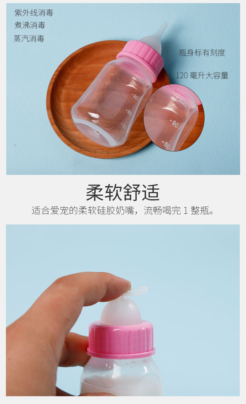 Botella de alimentación para mascotas transfronteriza 120ml doble pezón silicona gato y perro botella de alimentación suministros para mascotas en stock al por mayor