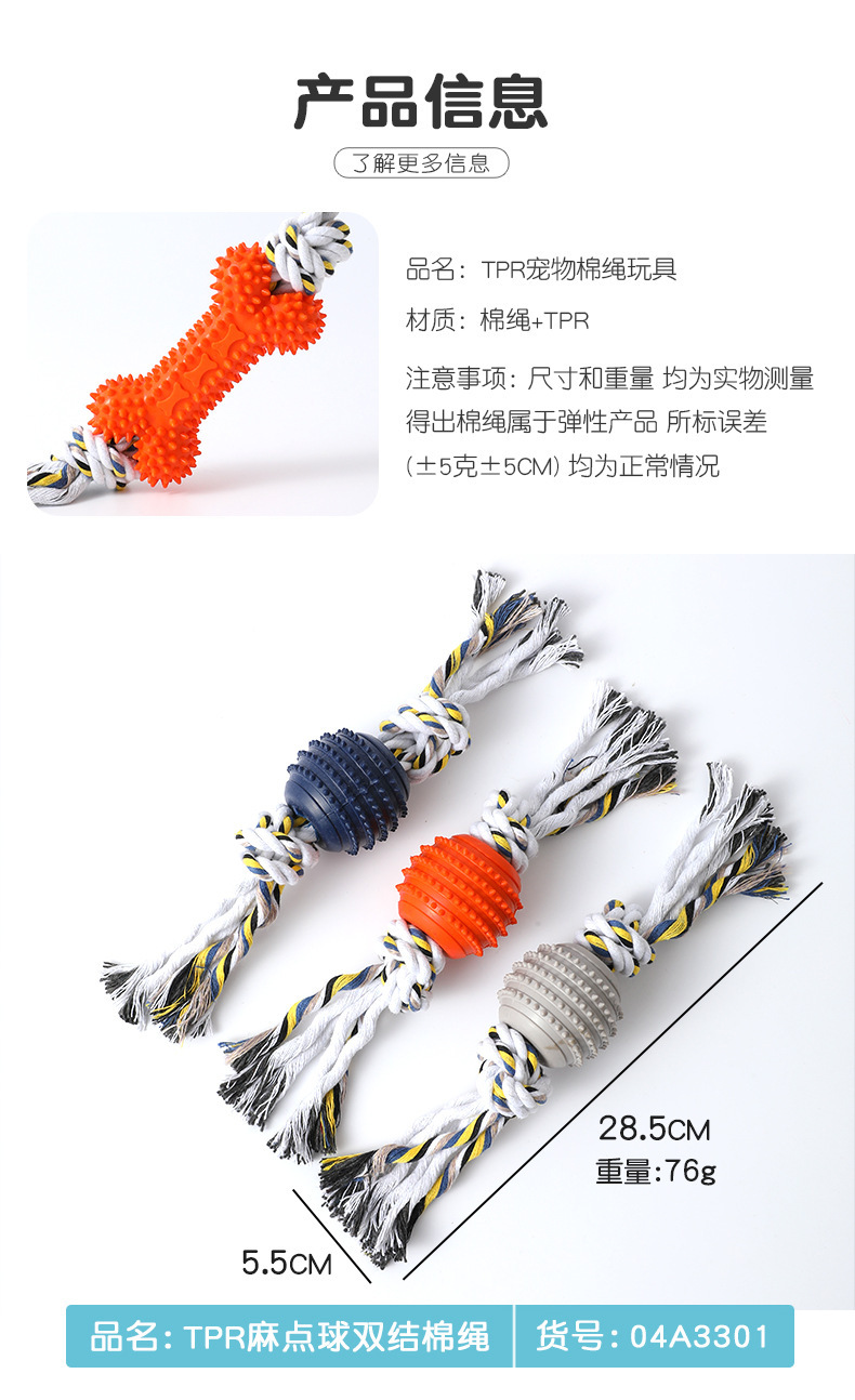 Juguete masticable portátil de cuerda de algodón con forma de hueso pequeño ZTPR, juguete para perros duradero para la dentición, juguete interactivo de entrenamiento para mascotas al por mayor.