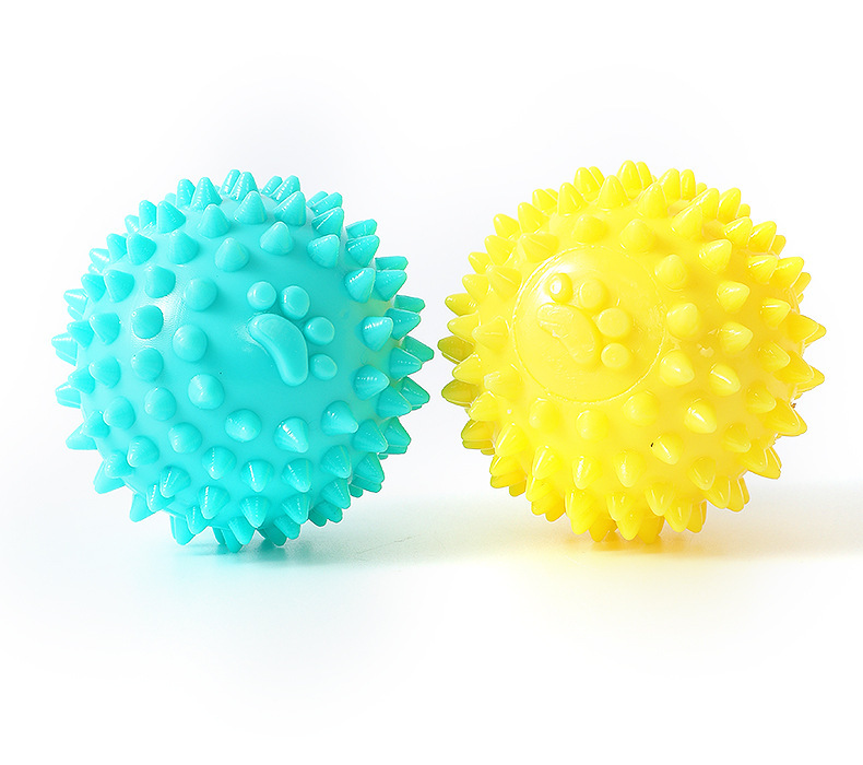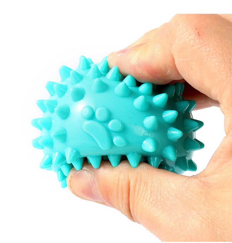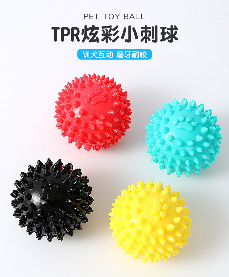 Juguete de pelota con púas de colores para perros pequeños y medianos, juguete interactivo para aliviar el aburrimiento y limpiar los dientes, en stock al por mayor.