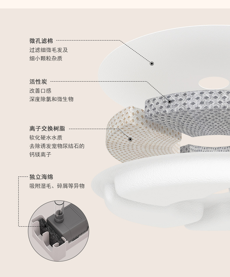 Amazon en stock al por mayor dispensador de agua para mascotas filtro núcleo gato dispensador de agua purificación de agua Filtro de circulación de Algodón