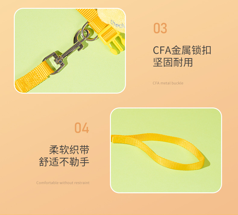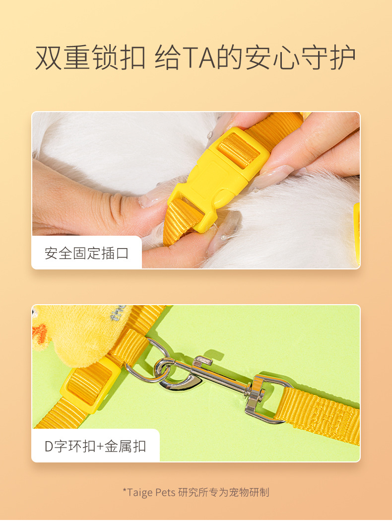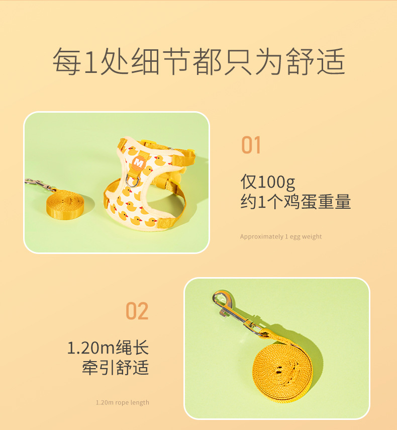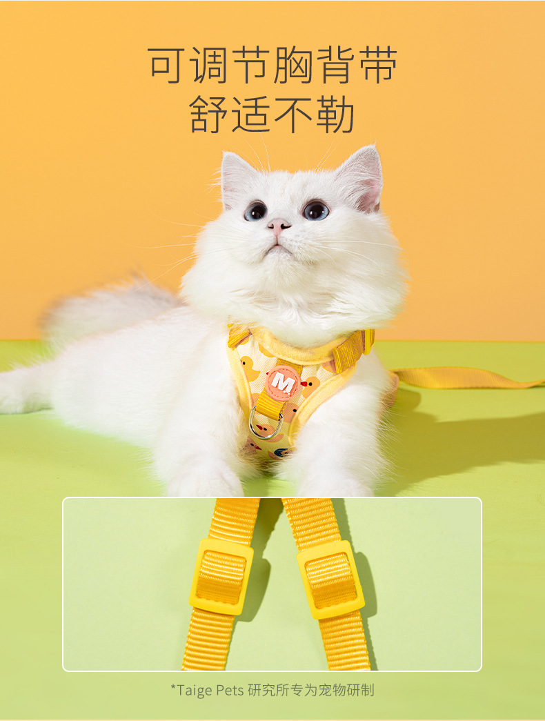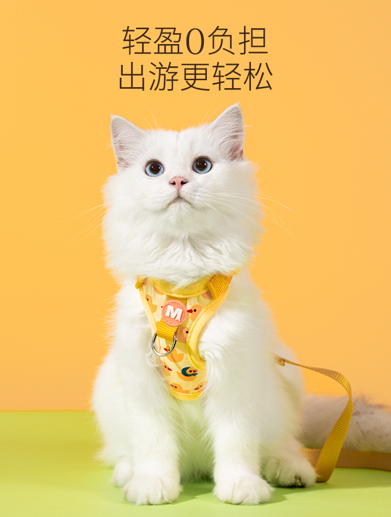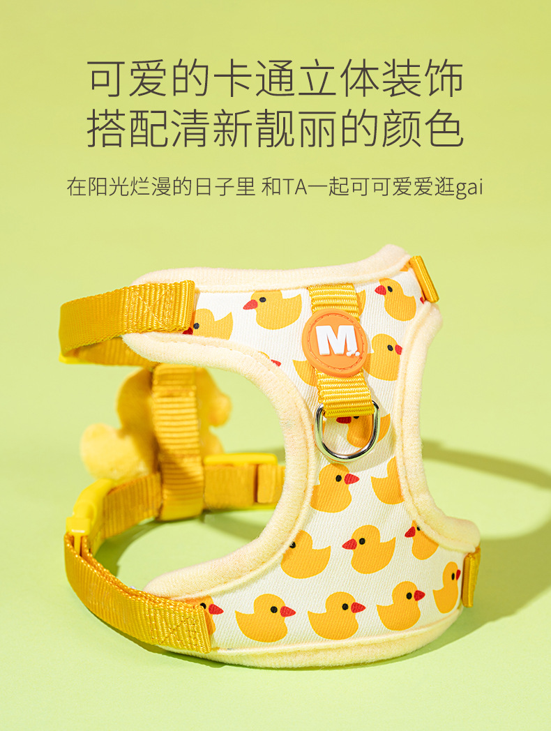 Nueva cuerda de tracción para gatos, lindo patito amarillo, chaleco anti-liberación, pecho de mascota, espalda ajustable al por mayor