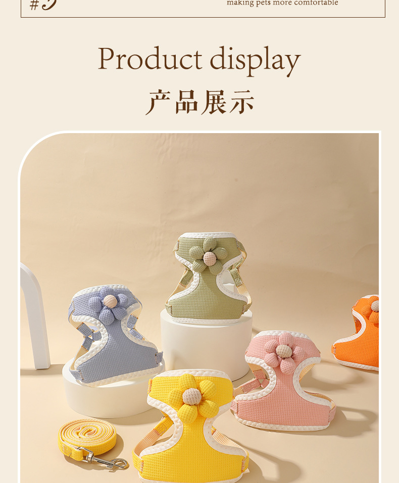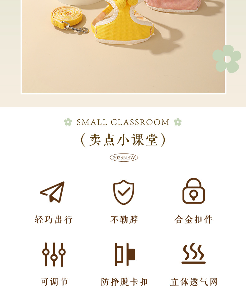 Nuevo estilo gato perro correa de correa tipo chaleco perro mediano y pequeño correa ajustable para el pecho cuerda para pasear perro spot al por mayor