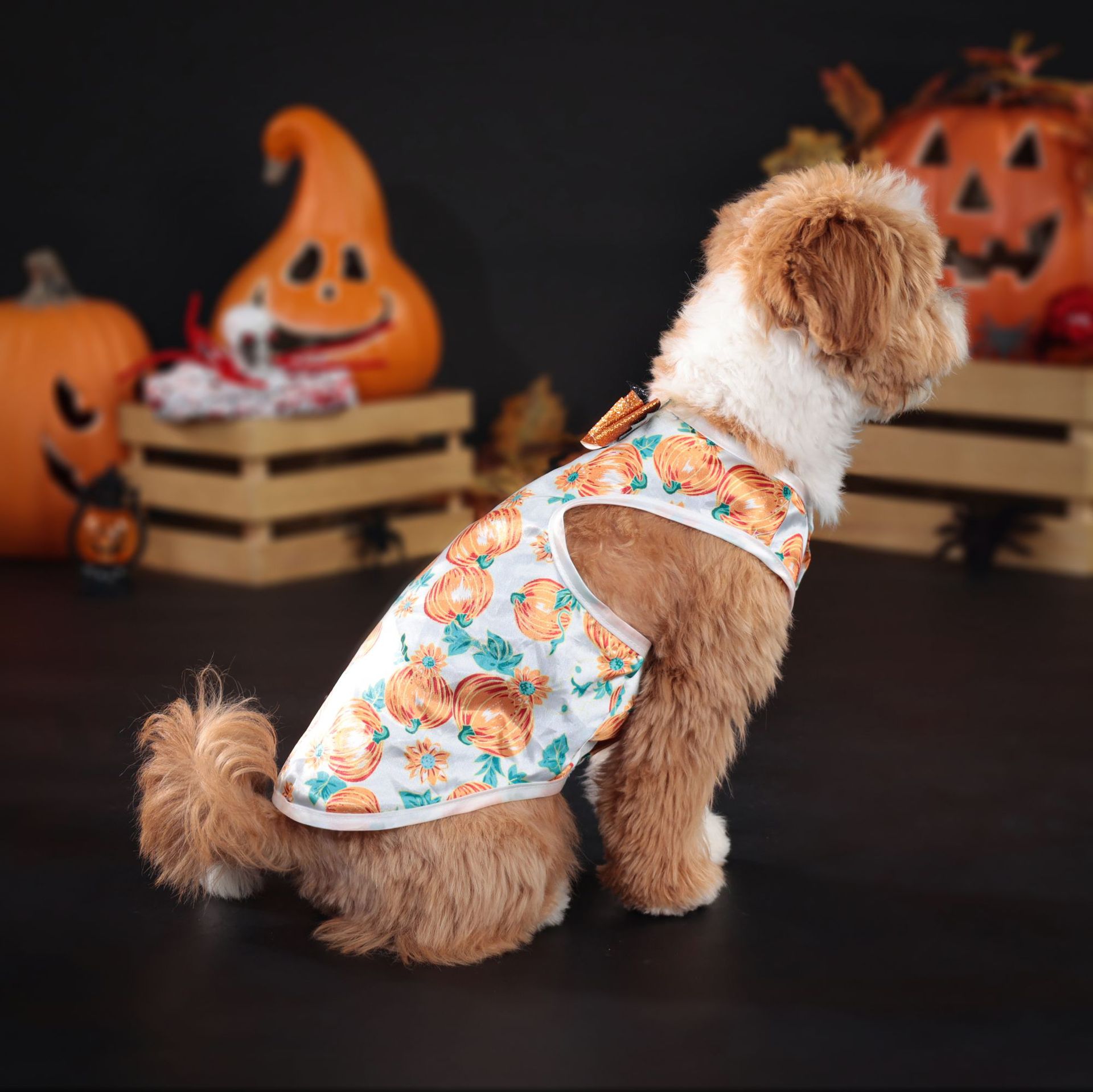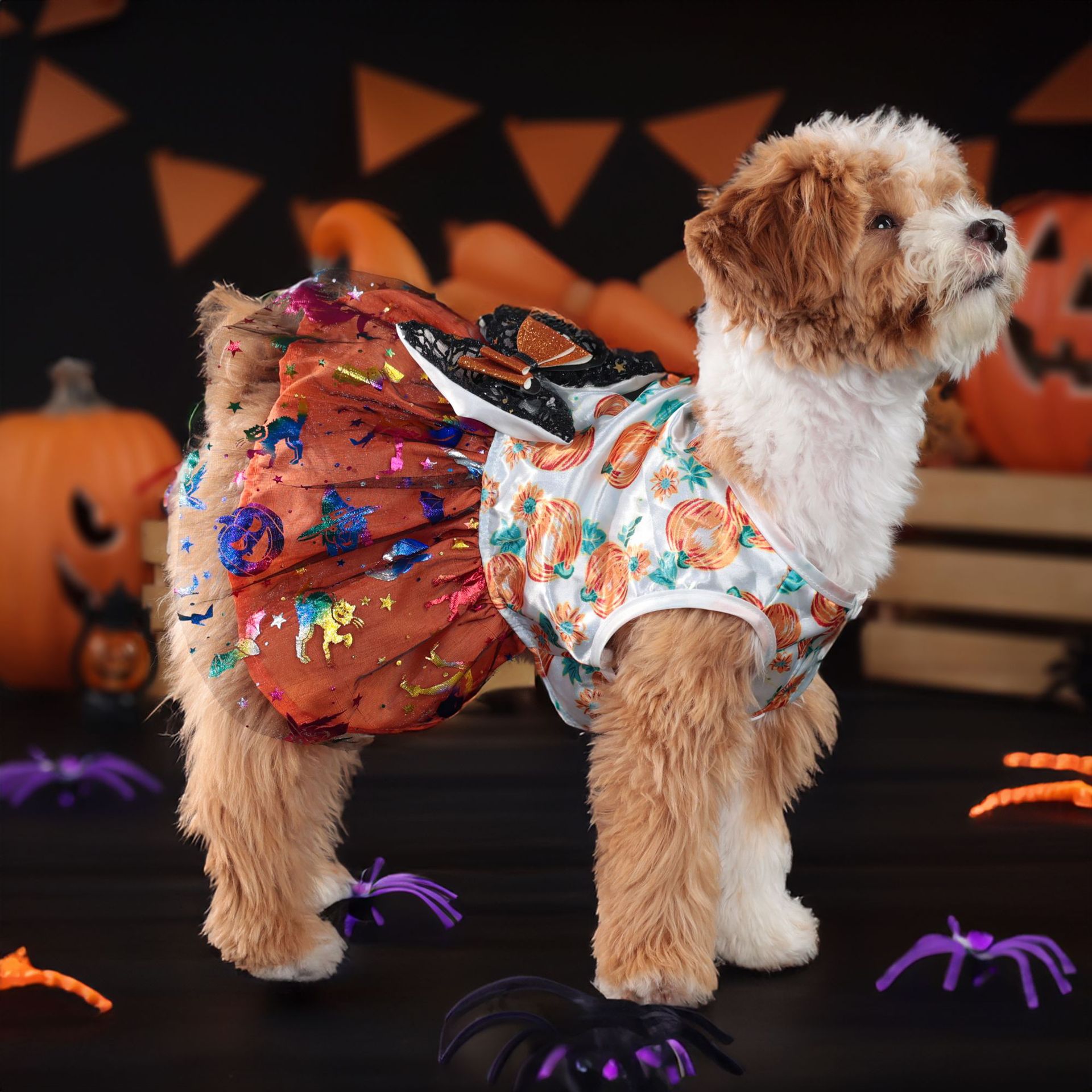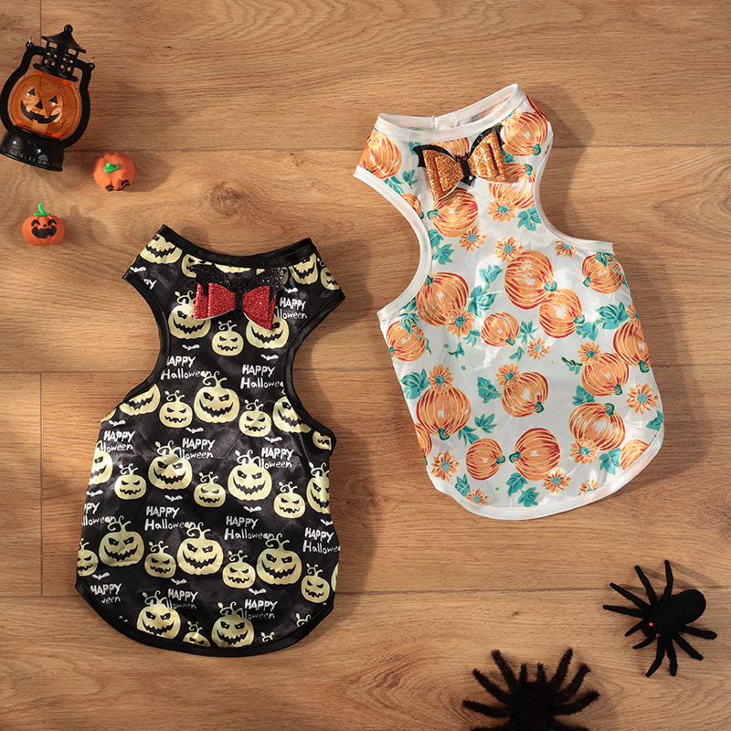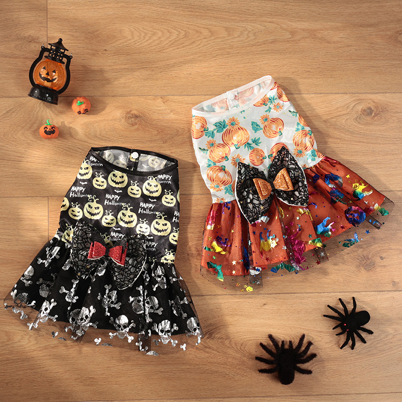 Halloween transfronterizo de alta calidad tela de malla arco vestido de mascota ropa de perro pequeño ambiente de vacaciones tela de malla de perro