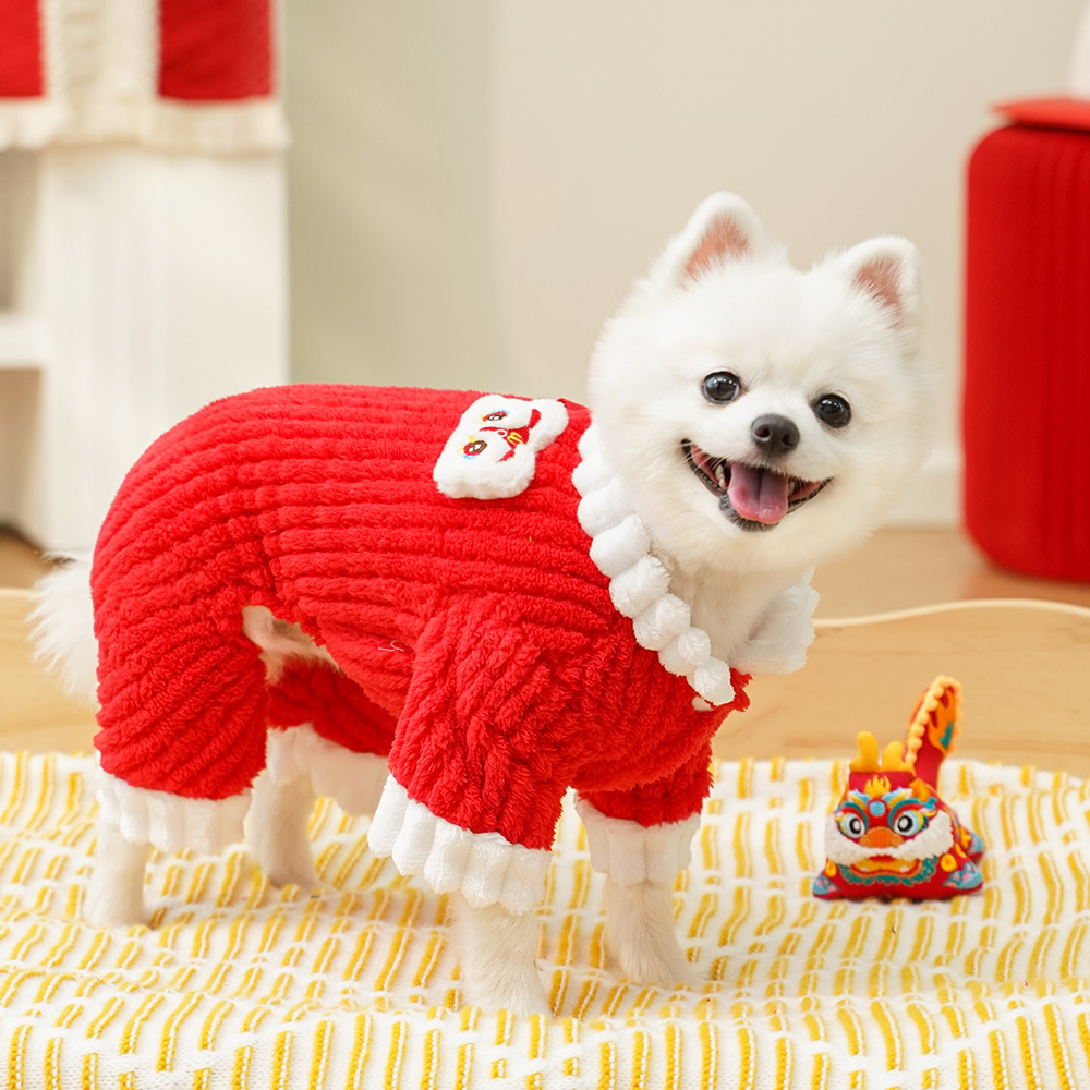 Año Nuevo mascota de cuatro patas más terciopelo grueso calentamiento otoño invierno ropa de perro para gatos ropa de perro para gatos al por mayor