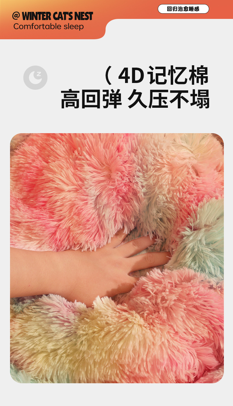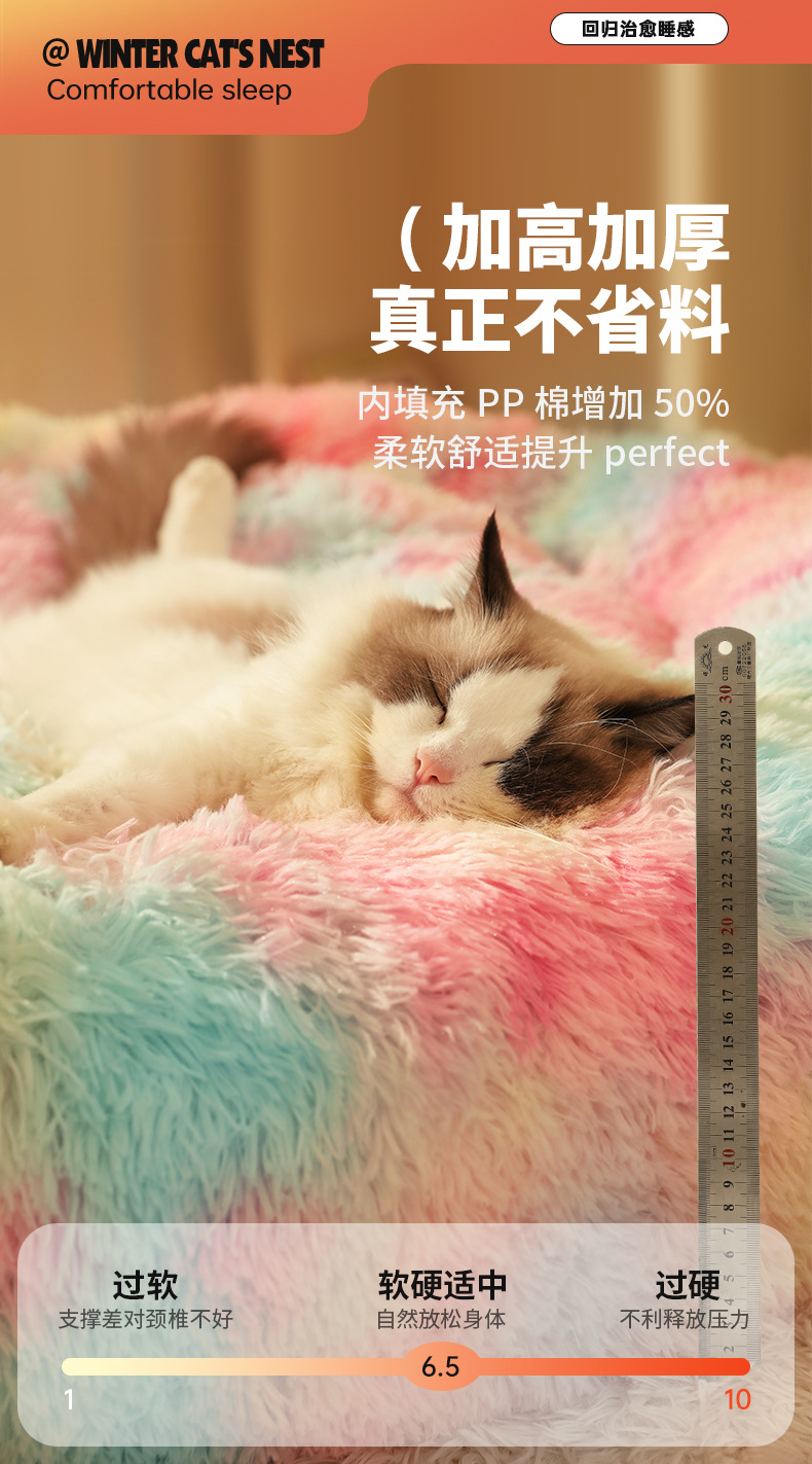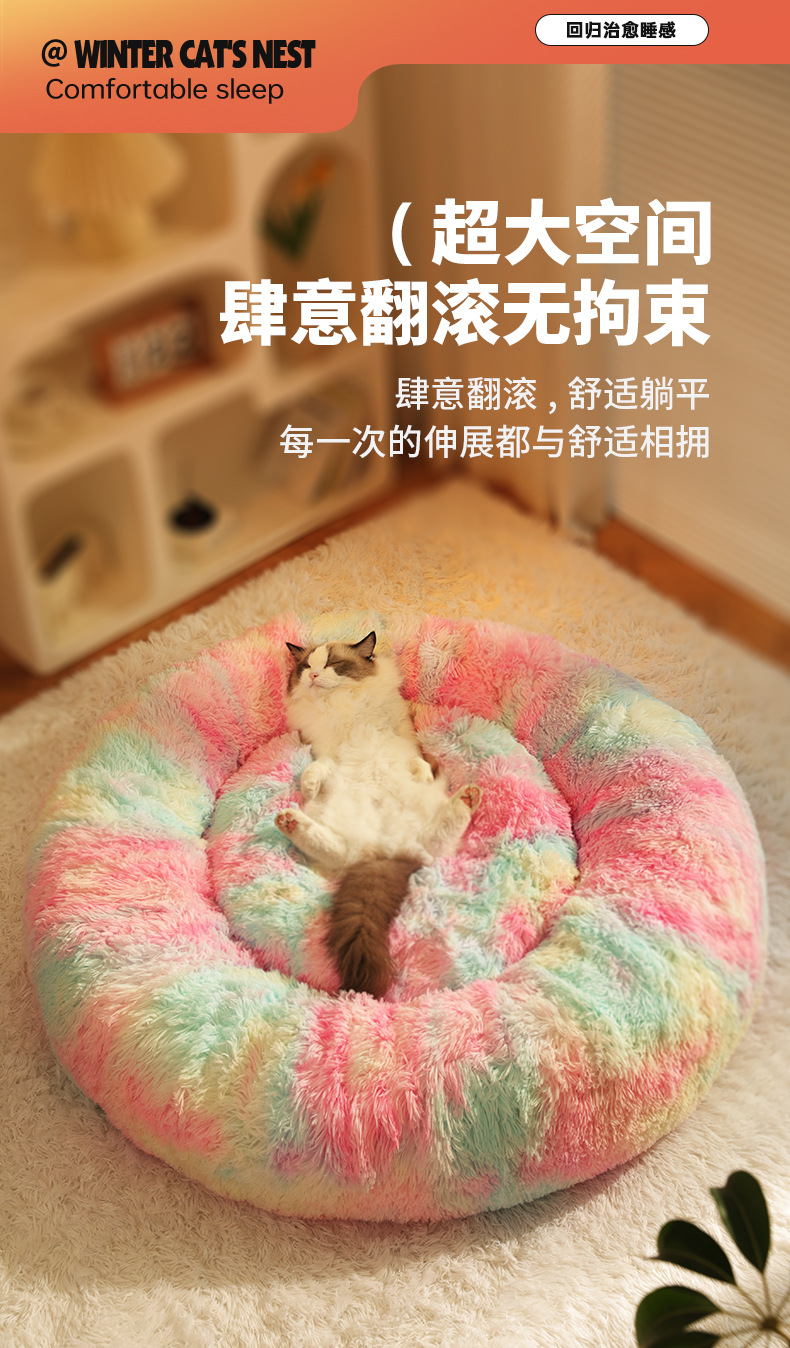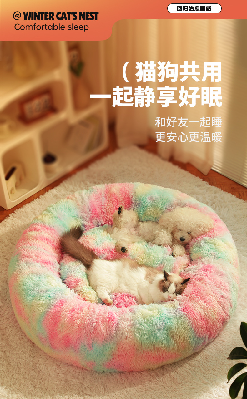 Nuevo Arco Iris de felpa nido mayor engrosamiento invierno cálido suave sueño profundo cómodo gato nido suministros al por mayor