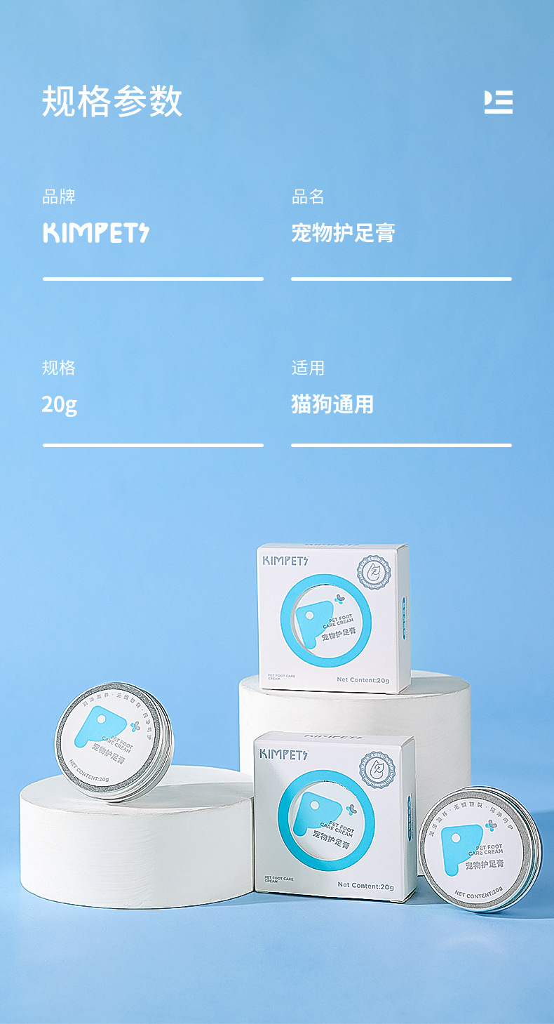 | Especificaciones | Crema para el cuidado de los pies de mascotas 20g |