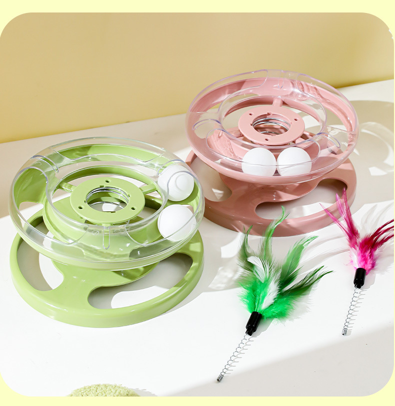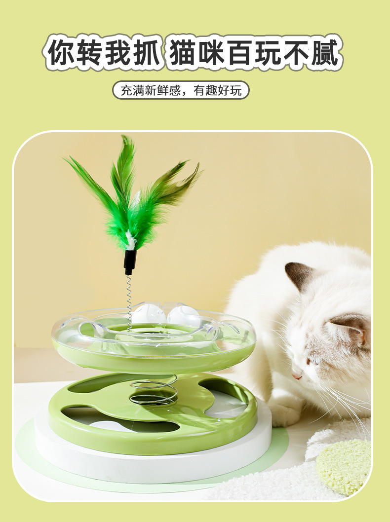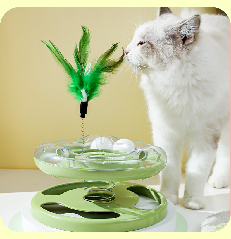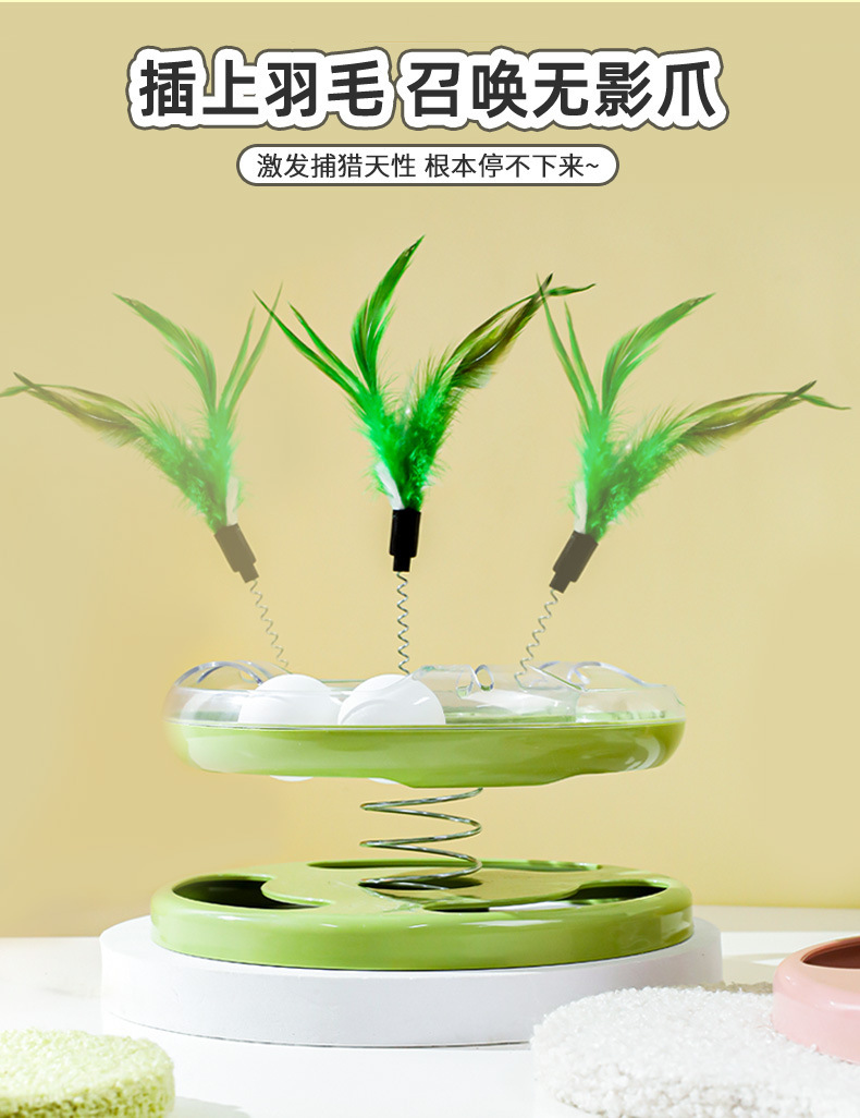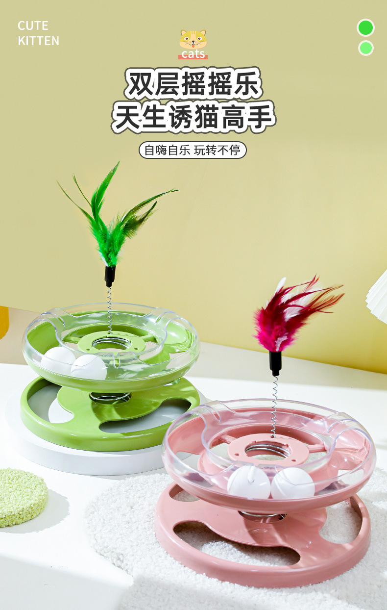 Hawo gato juguete primavera balanceo de doble capa Placa de diversión gato auto-Hola pluma de juguete divertido gato suministros para mascotas