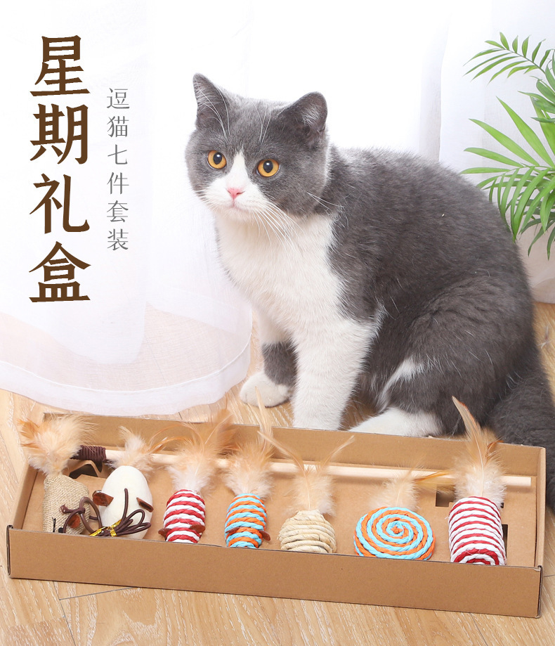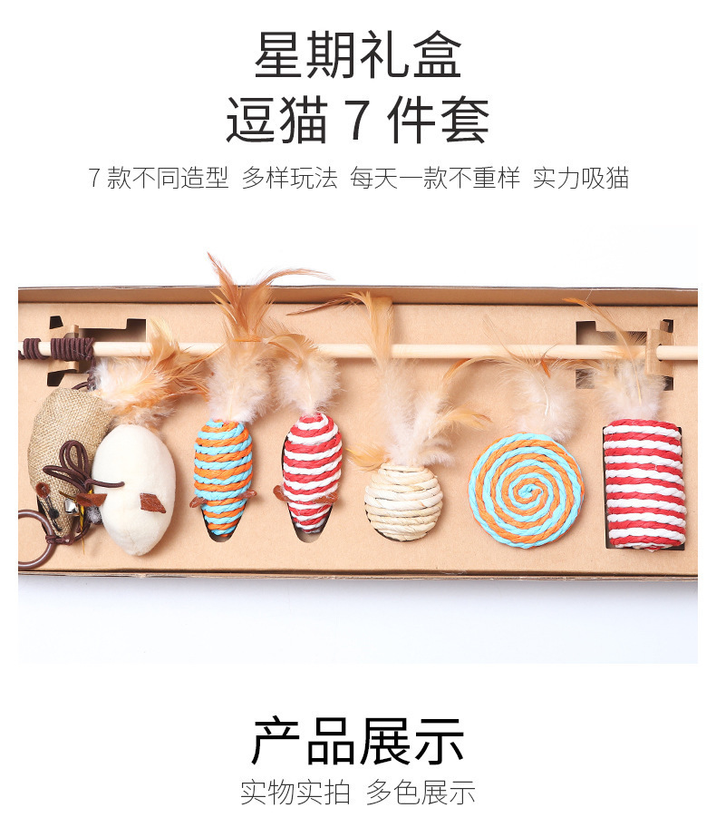 Siete piezas divertido gato palo gato juguete auto-Hola alivio tapado resistente a mordeduras gatito Bell traje para mascotas suministros para mascotas