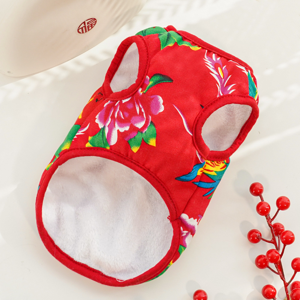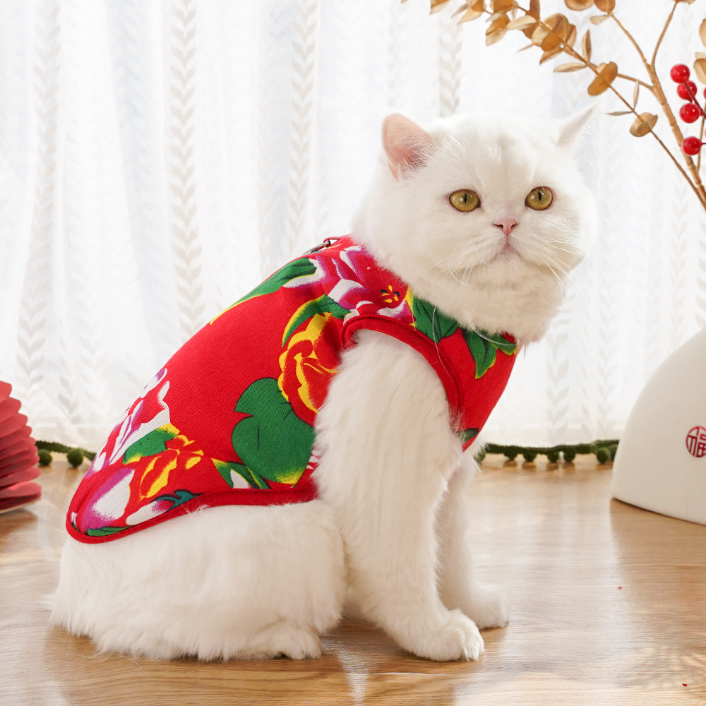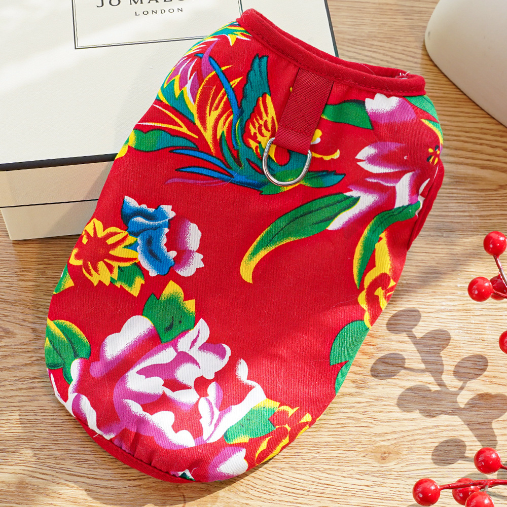 Chaleco para perro con flores grandes del noreste, ropa para perros pequeños, medianos y grandes de Año Nuevo, ropa para perros y gatos, suministros para gatos, ropa al por mayor