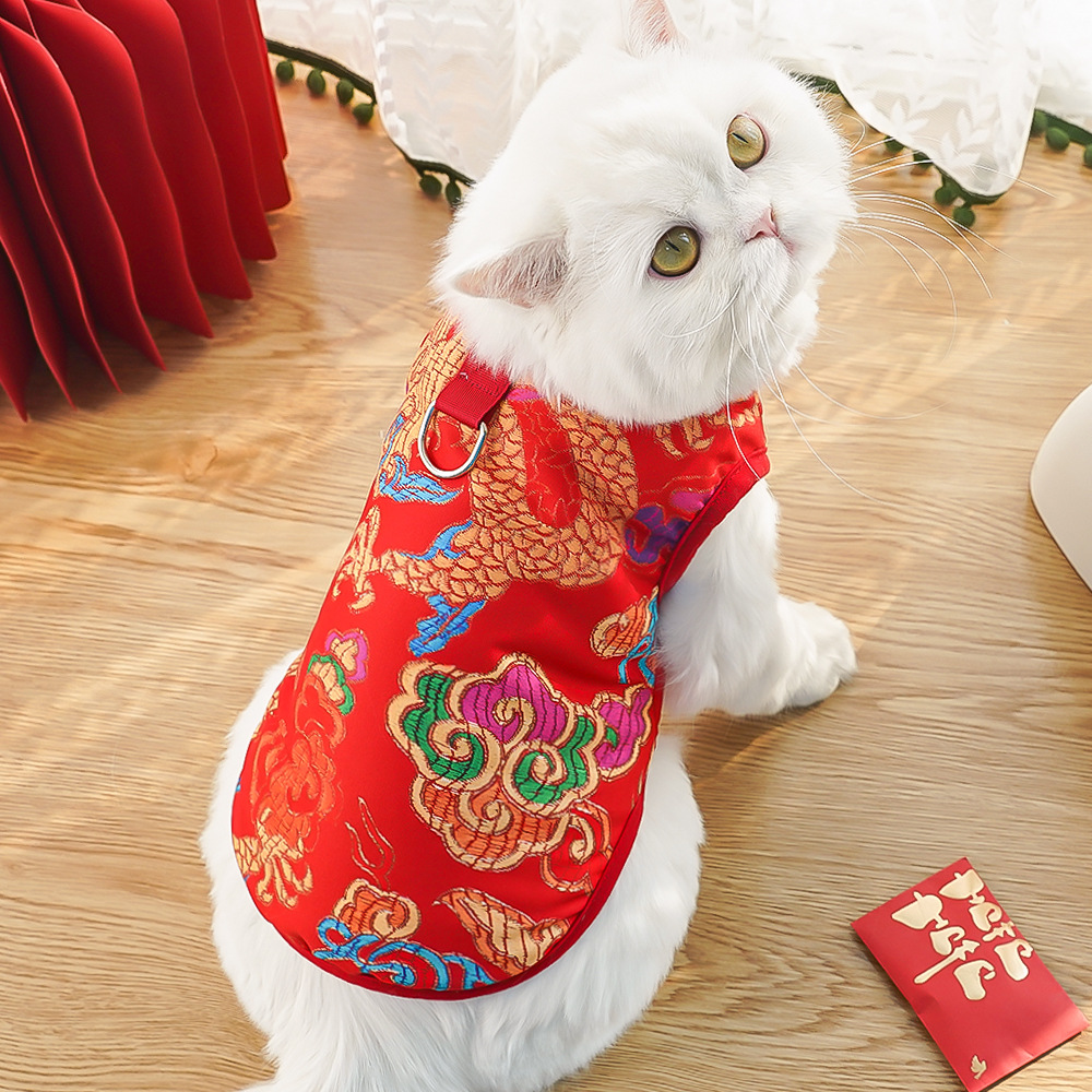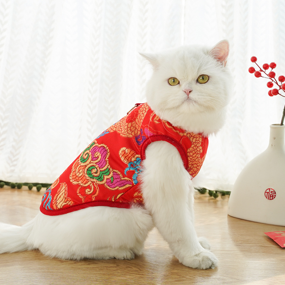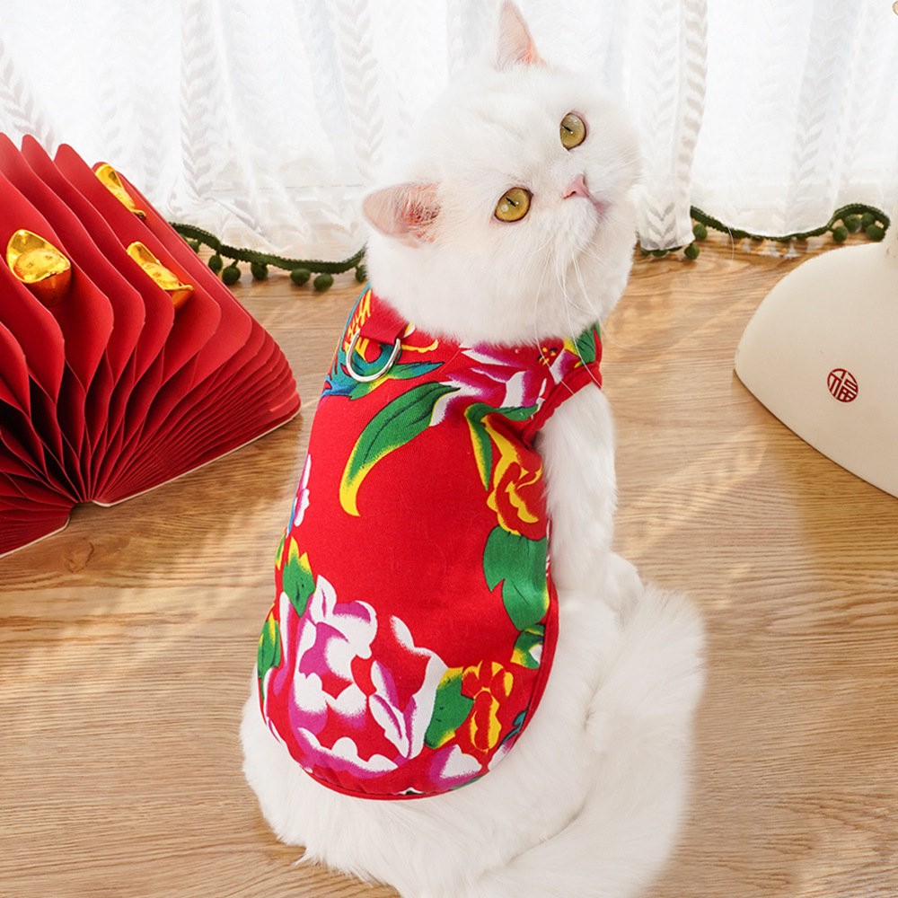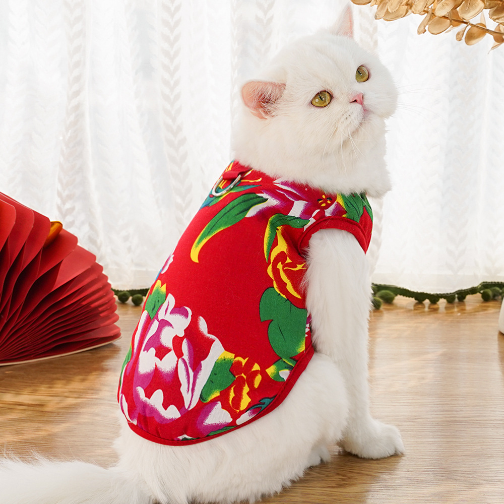 Chaleco para perro con flores grandes del noreste, ropa para perros pequeños, medianos y grandes de Año Nuevo, ropa para perros y gatos, suministros para gatos, ropa al por mayor