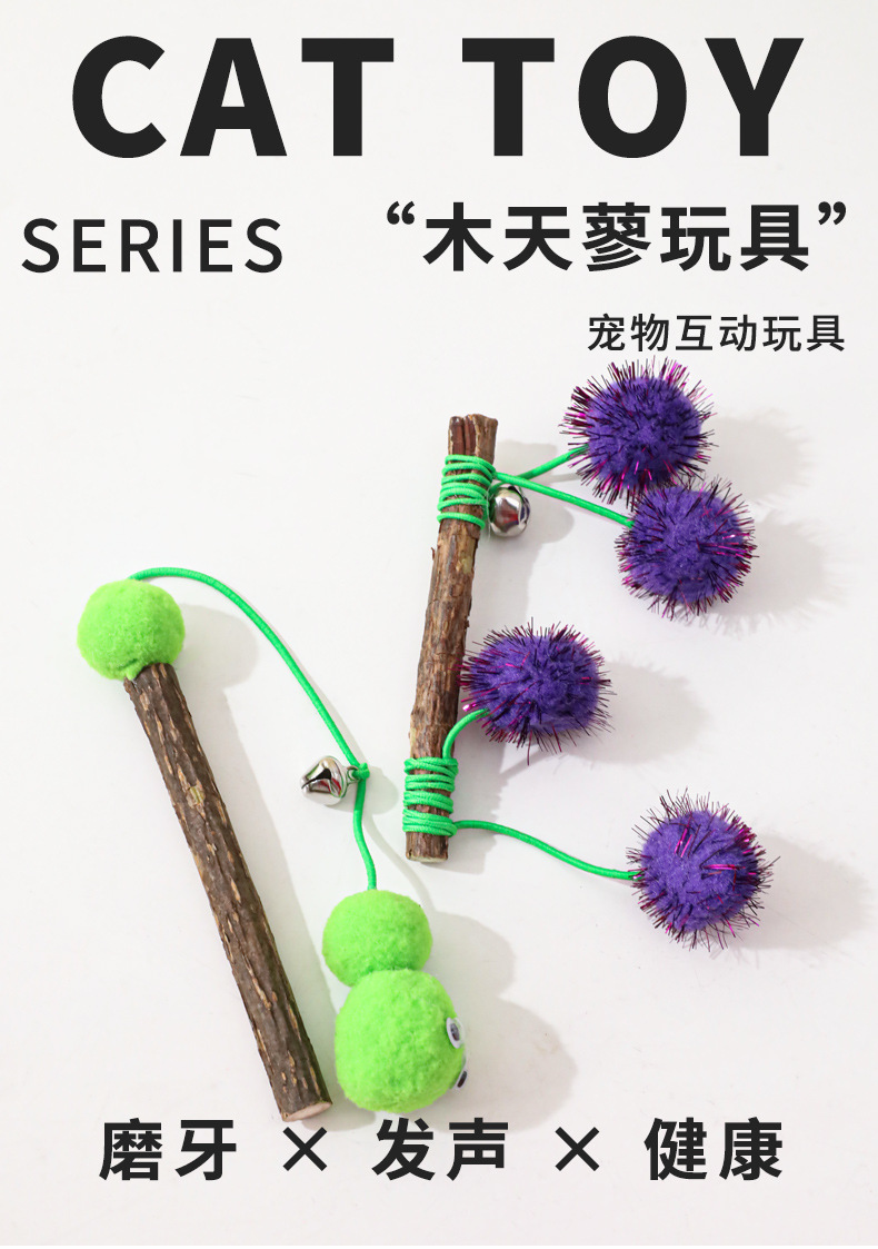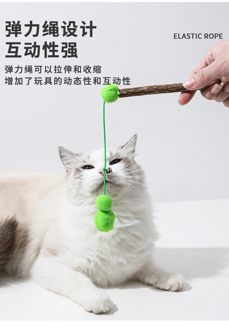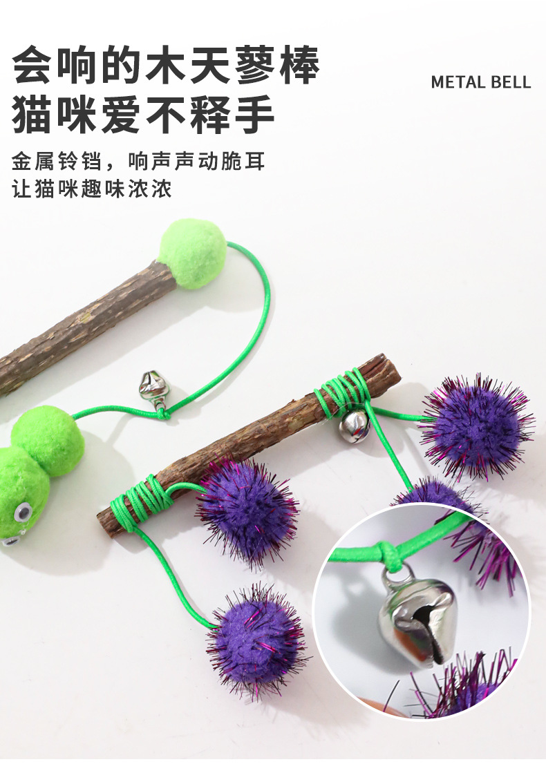 Madera tiandiana varita de gato molar para aliviar el aburrimiento cuerda elástica gusanos verdes juguetes para gatos sonidos interactivos campana varita de gato