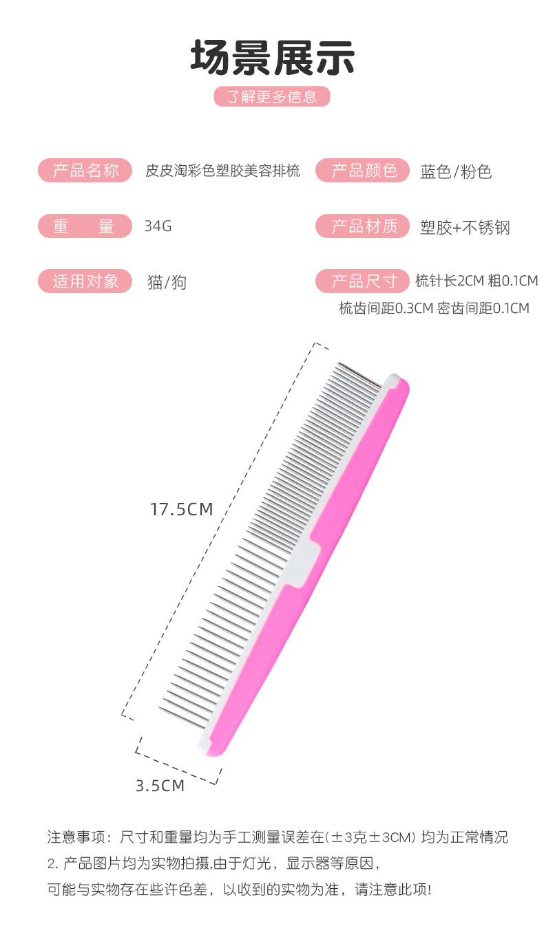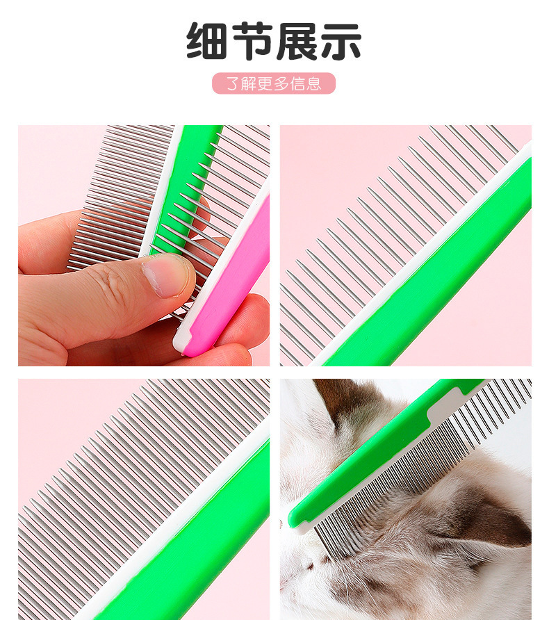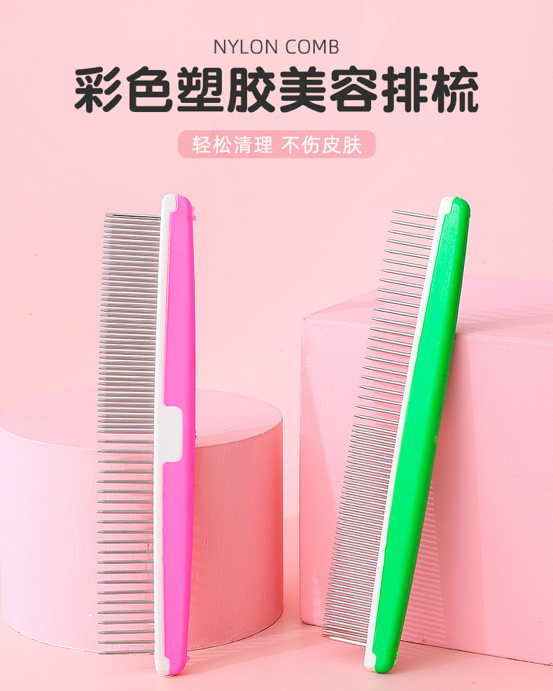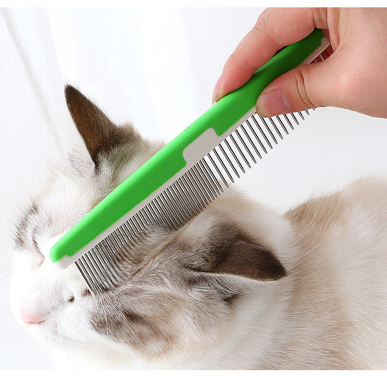 Pipitao colorido plástico mascota belleza peine gato con densos dientes dobles nudo abierto mullido recto gato peine