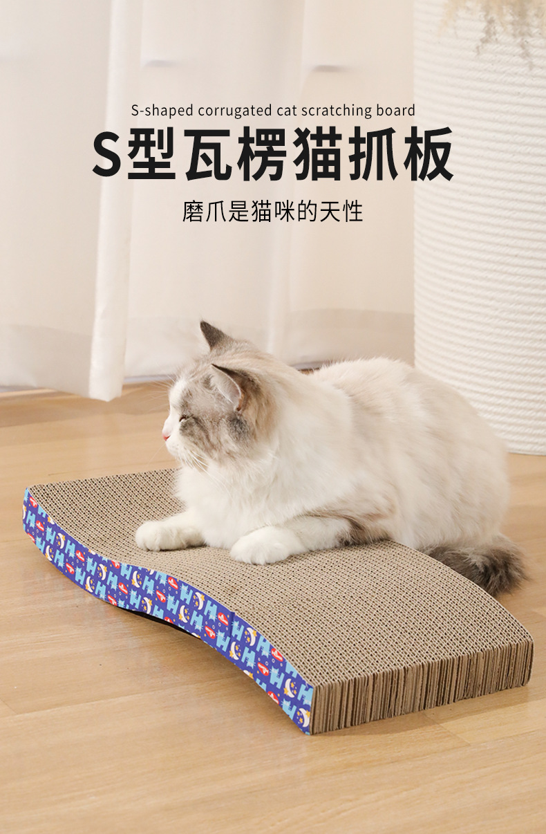 S-tipo de papel corrugado tablero del rasguño del gato fábrica al por mayor gato garra tablero de molienda gato interactivo divertido gato suministros gato juguete