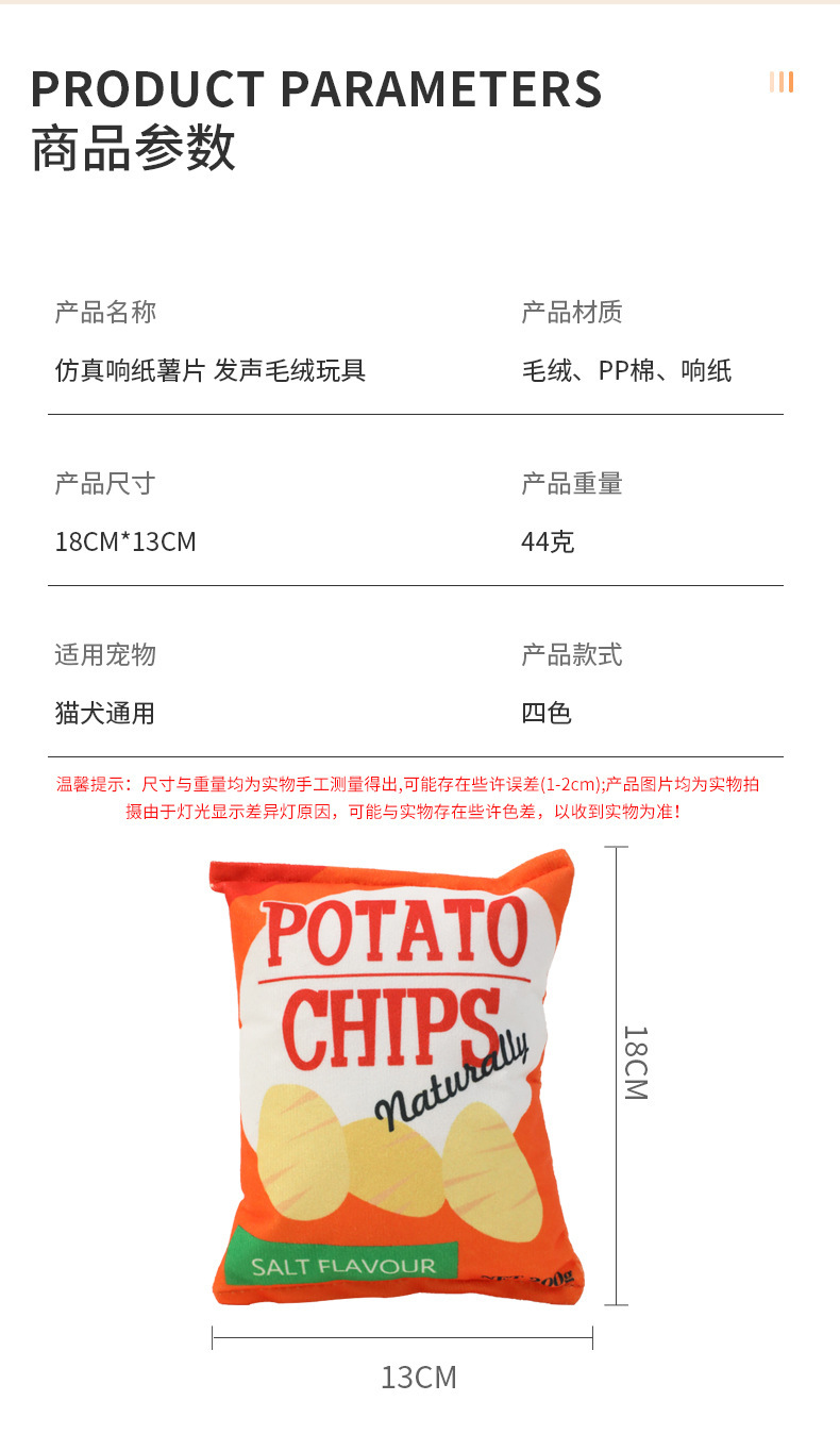 Juguetes de sonido para perros para mascotas Papel de sonido Patatas fritas Simulación Mordedura artefacto interactivo para aliviar el aburrimiento Juguetes para cachorros Corgi Teddy