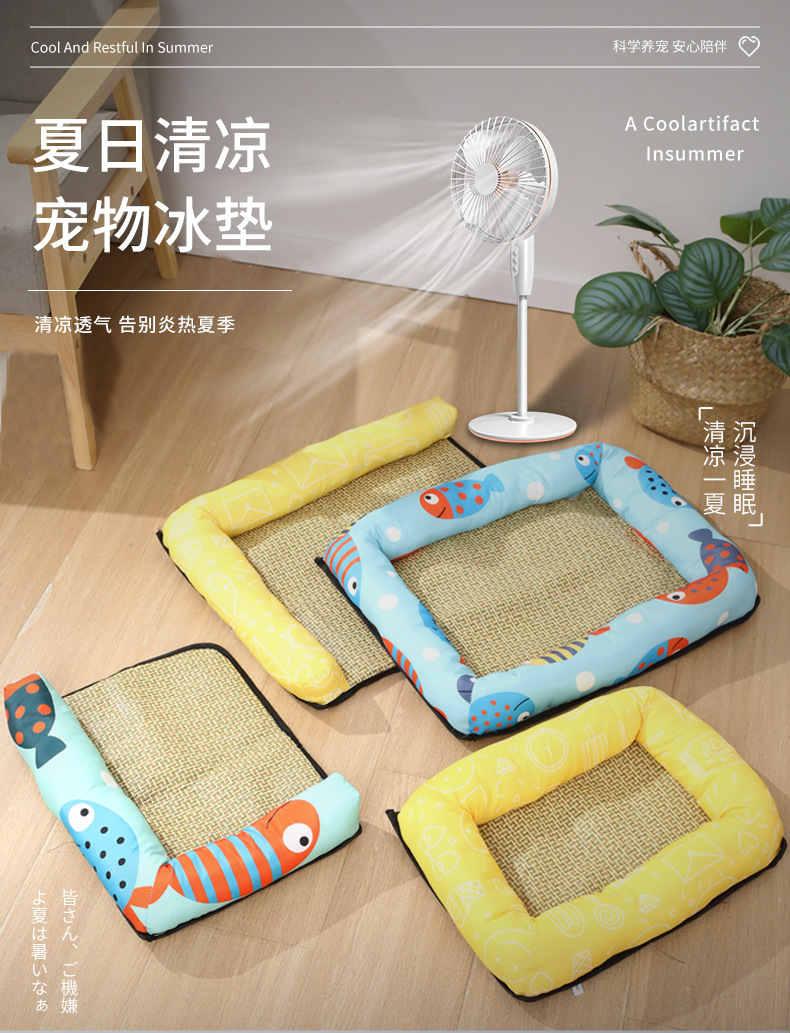 Alfombra refrescante de verano para mascotas, cama para perros, alfombra de paja rural resistente al calor, alfombra transpirable y cómoda para perros, cama refrescante y refrescante para gatos.