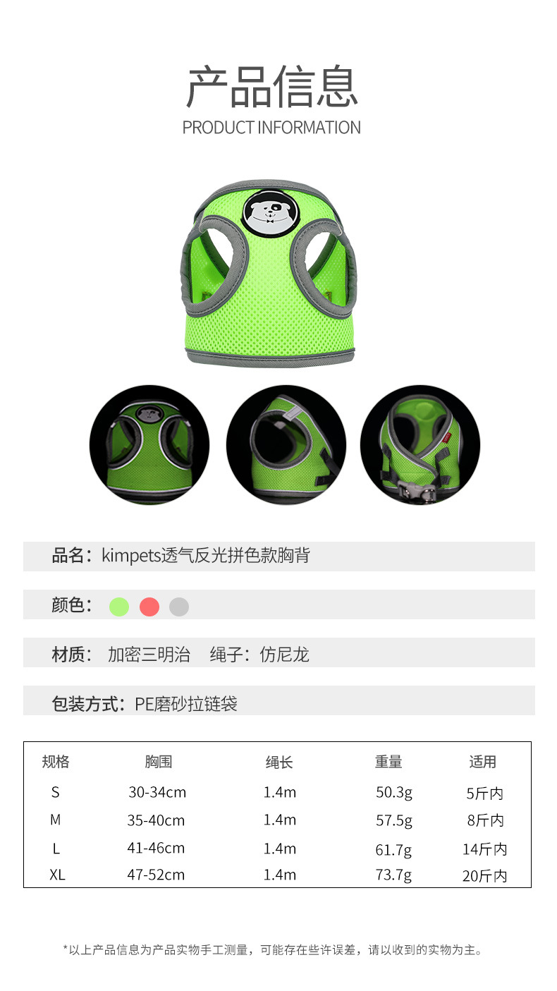 Correa de pecho de cuerda de tracción reflectante transfronteriza para mascotas estilo chaleco anti-rotura en el pecho espalda transpirable gato perro cuerda de tracción